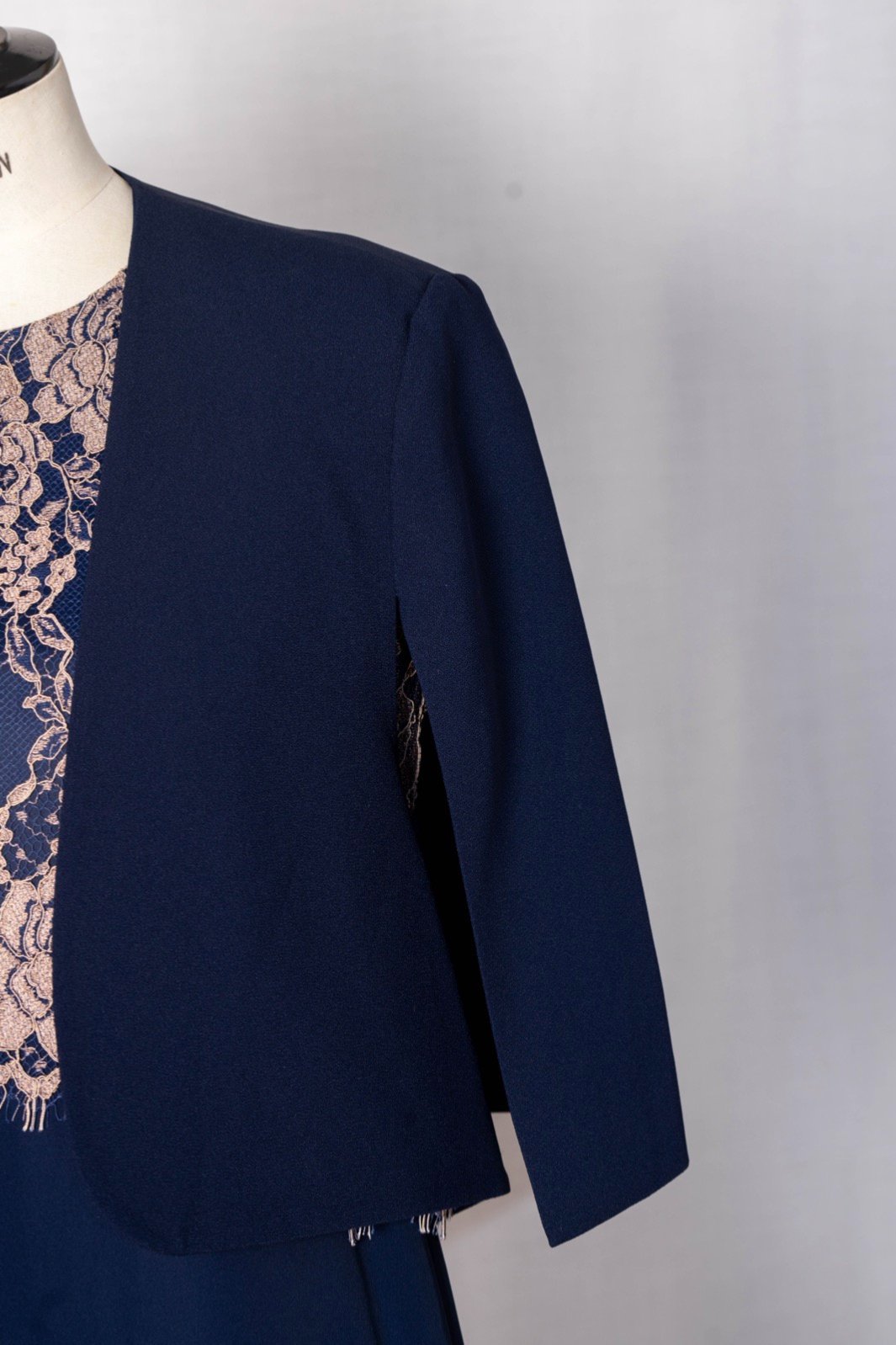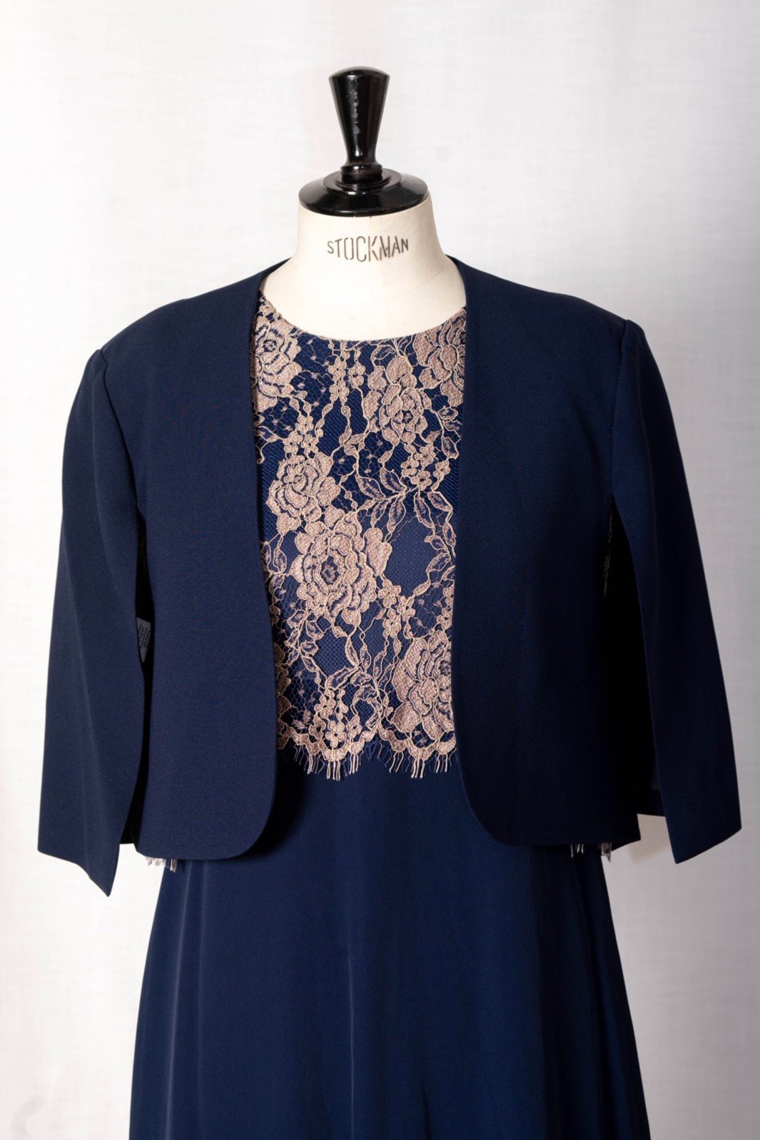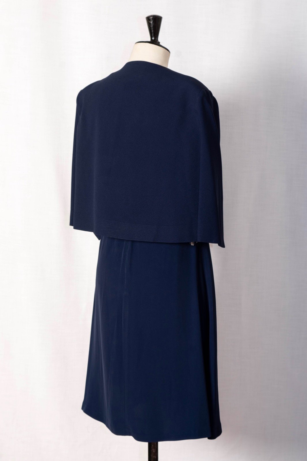 Courte et forme boite, encolure ronde fermeture bord à bord, à manches longues, assortie à une superbe robe à encolure découpe cur ultra féminine. Cette robe découpes princesse, courte, à petites manches combine un crêpe doux et souple à un mikado soyeux imprimé de larges fleurs effet peinture pour un style arty esprit années 50.