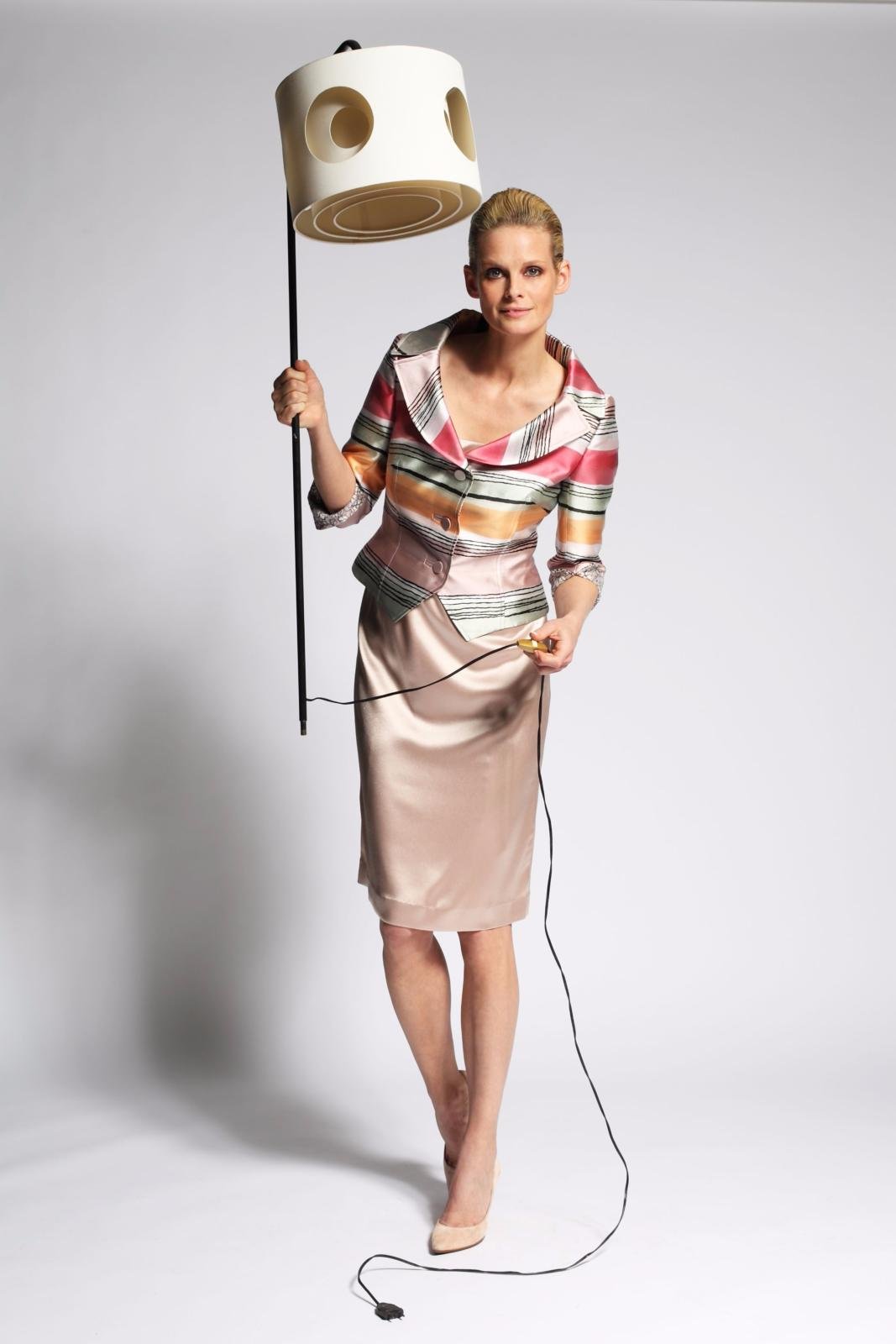 La veste très ajustée avec son grand col vous fera un décolleté très féminin est coupée dans une très belle soierie rayée multicolore