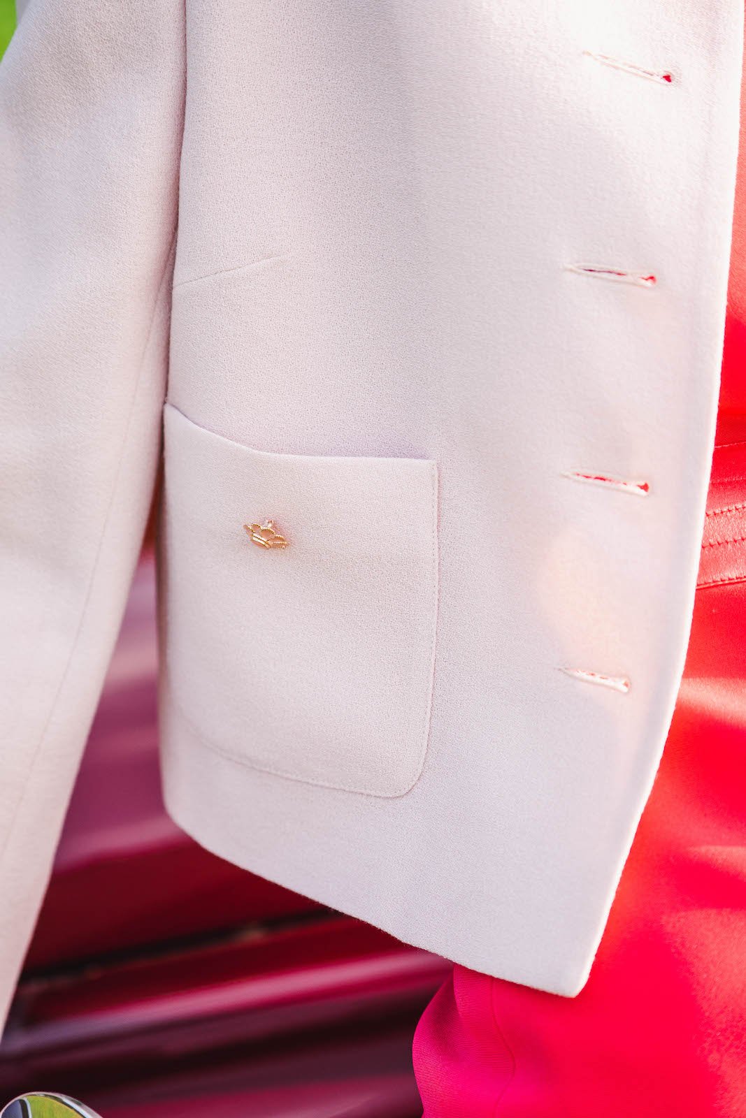 Cette magnifique veste et sa simplicité sophistiquée vous assure une silhouette parfaite pour un mariage ou un évènement important de votre vie. La veste est en crêpe de laine fine. Le col arrondi et le découpe est parfaite pour mettre en valeur votre décolleté. Les boutons bijoux agrémentent joliment le look. A coordonner à un pantalon Copra, Cora ou à une robe Lea, Valentina … Elle sera facile à coordonner à un jean pour un look plus city.