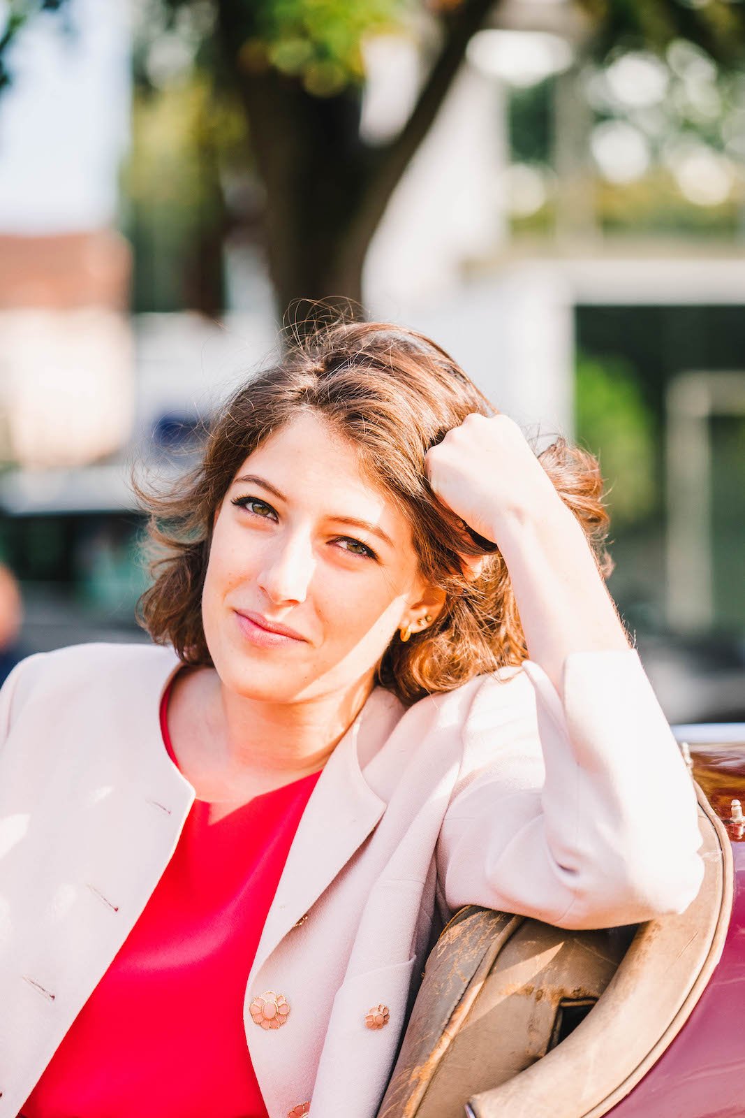 Sur cette photo, elle est portée avec une robe Valentina, très élégante et intemporelle.
