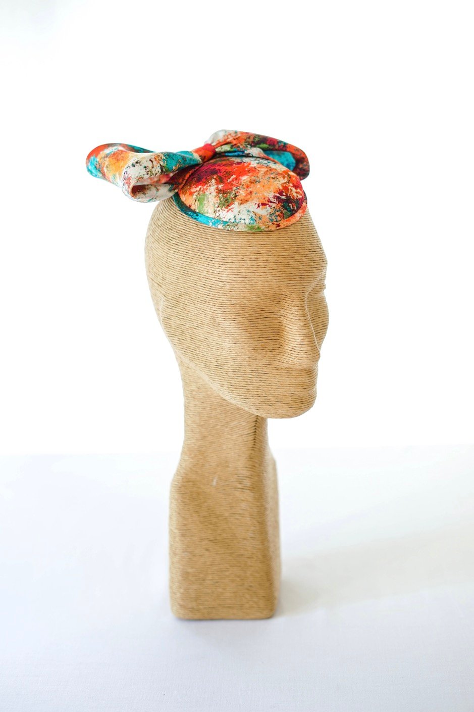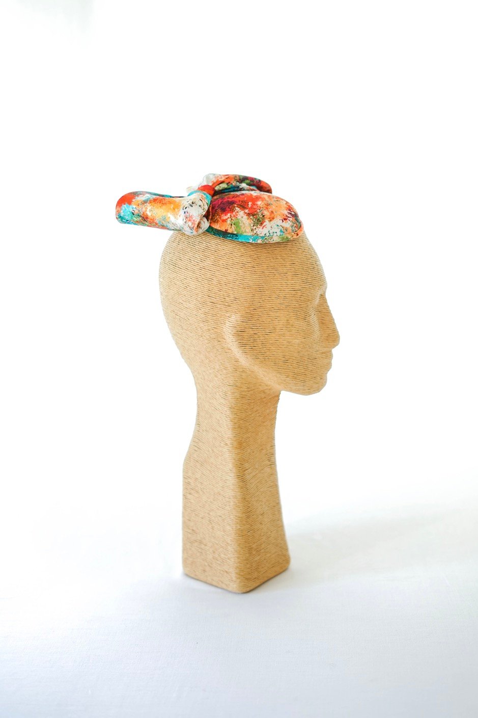 Chapeau de cérémonie CHIARA 435 en crêpe de satin de soie imprimé.