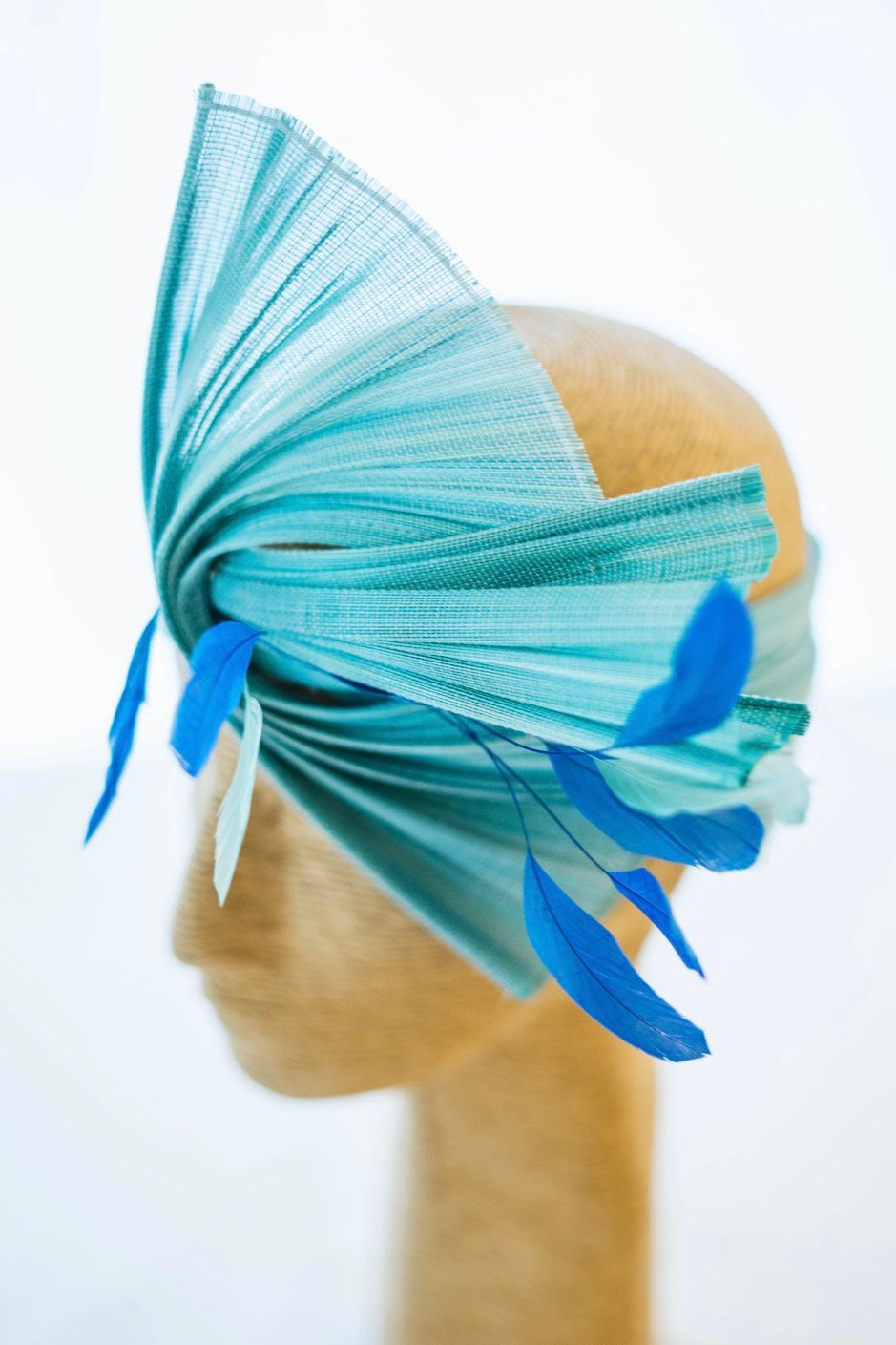 Chapeau turban de cocktail bicolore en plissé BUNTAL . A coordonner à un ensemble estival et coloré; Cette coiffe de mariage est facile à porter et à glisser dans votre coiffure. Nous réalisons nos chapeaux de cérémonie à la demande et dans les couleurs qui s’adaptent à votre tenue. Fabriqués par une chapellerie centenaire récemment classée au patrimoine vivant de l’artisanat français, nos chapeaux sont minutieusement travaillés et nécessitent un délai de livraison de 2 à 4 semaines.