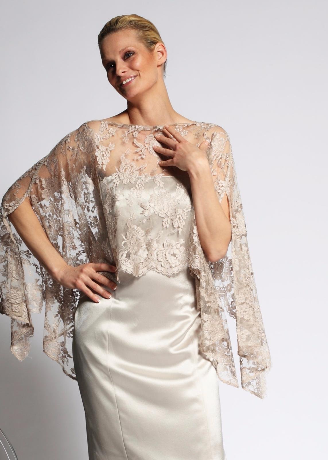 Robe bustier Aurore en crêpe et étole DAFNÉ en dentelle de calais
