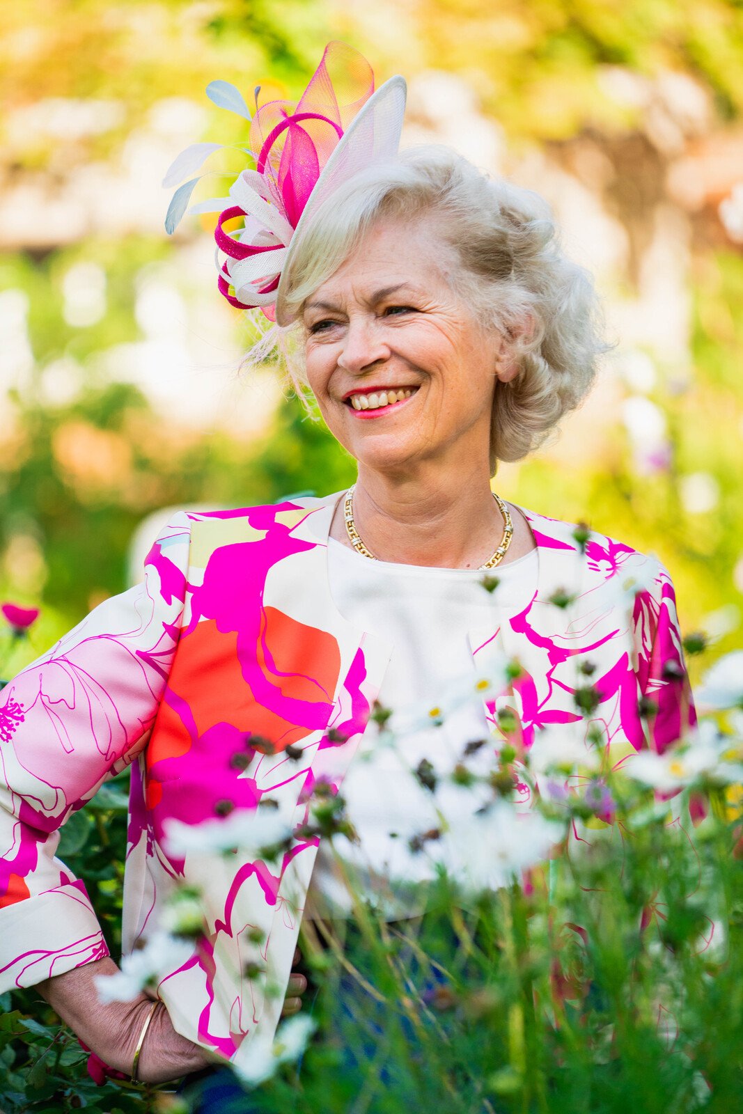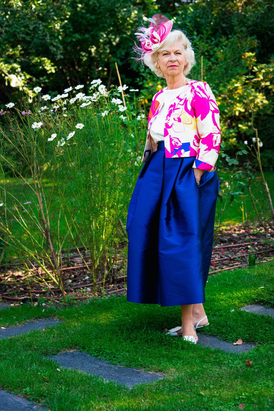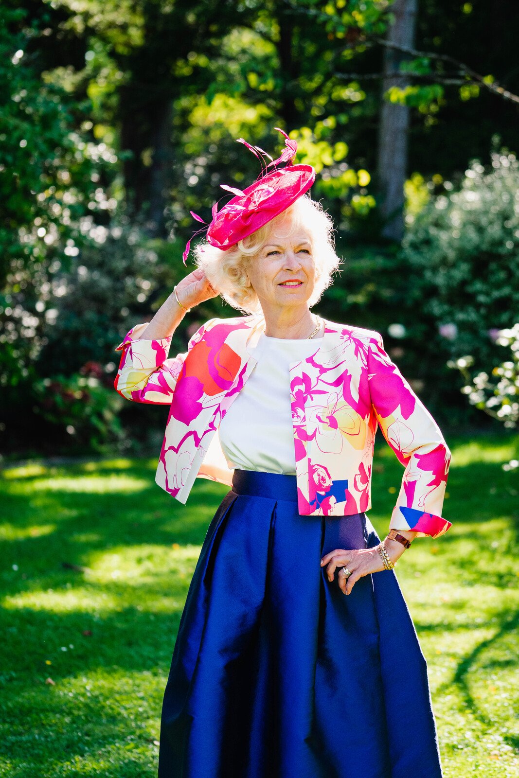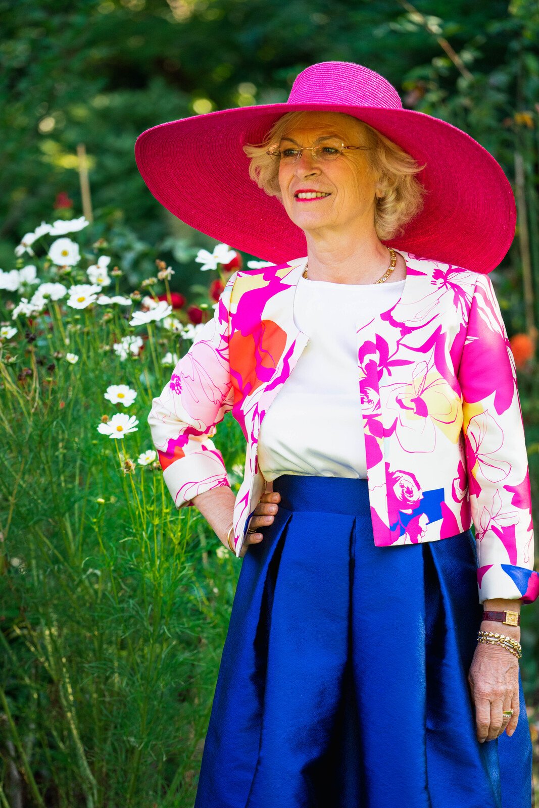 La veste THERESE, est élégante et contemporaine, elle est ornée de grandes fleurs Magenta aquarellées, idéale pour un cocktail ou une réception . Elle peut également être portée séparément à d’autres occasions.