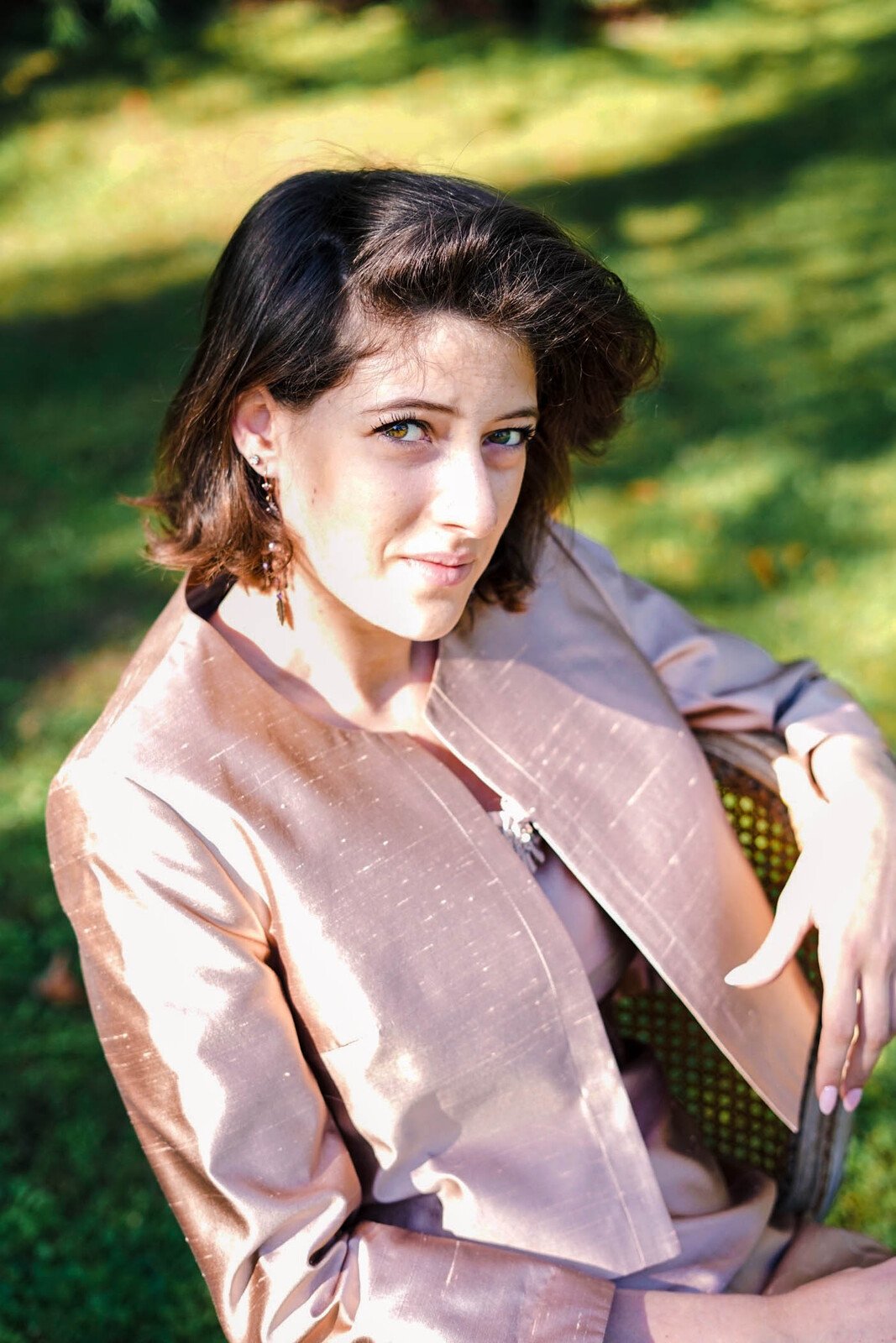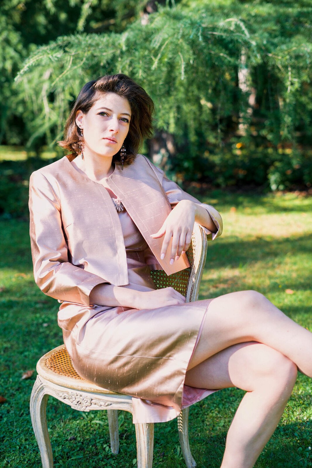 Un style impeccable pour cette veste THERESE coloris pêche réalisée dans une magnifique matière soie shantung pour une cérémonie habillée .