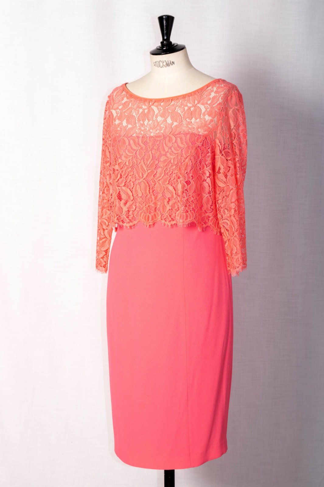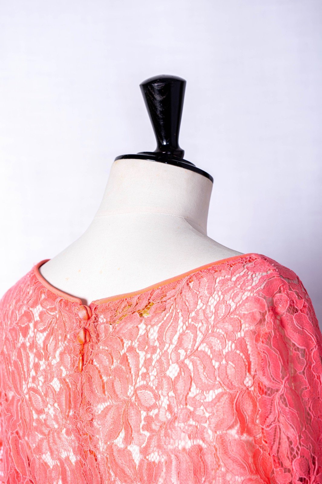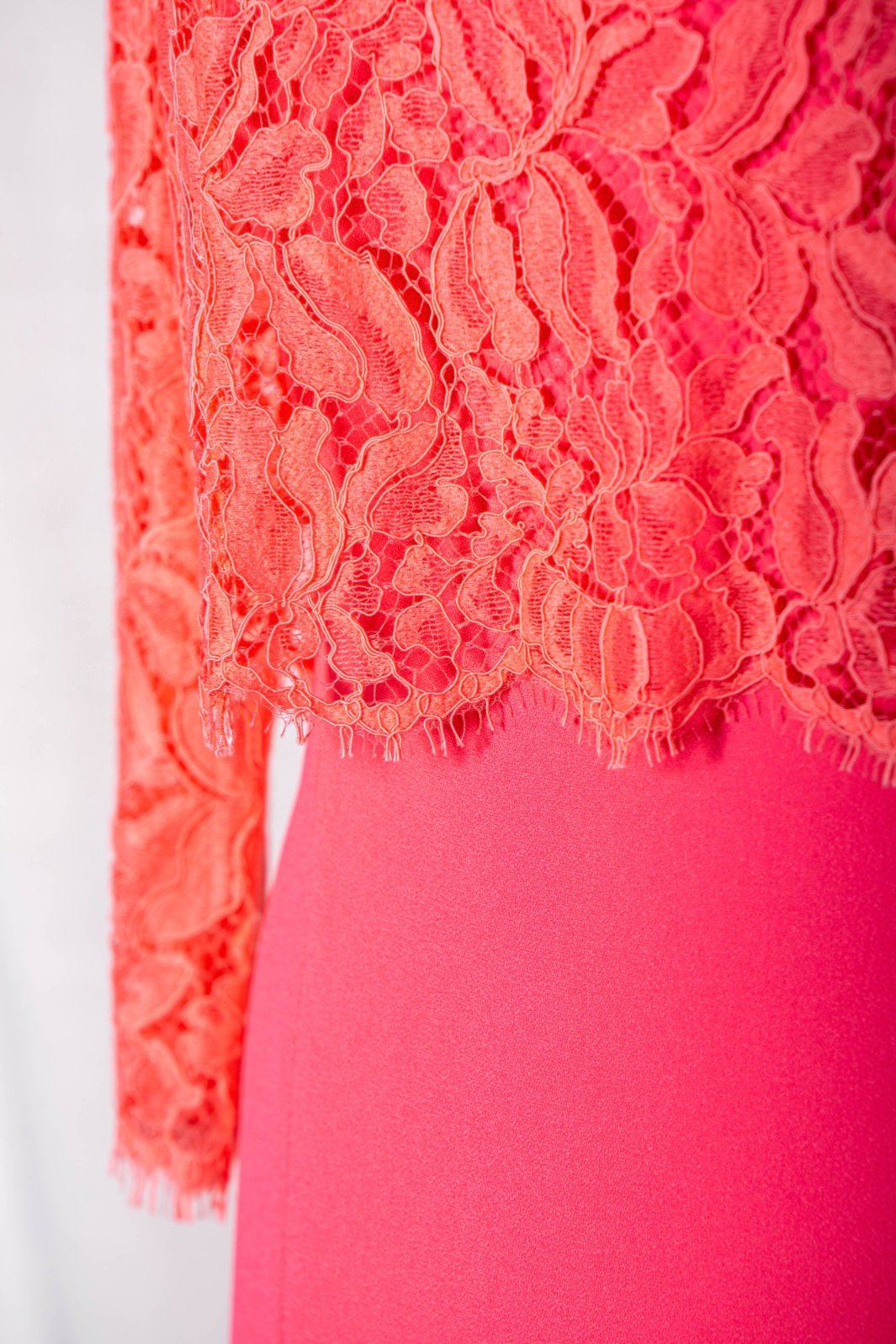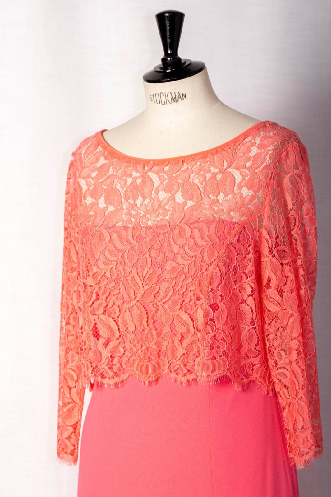 Magnifique robe fluide avec haut et manches 3/4 en dentelle de Calais. Cette robe de cocktail en crêpe lourd est parfaite pour un cocktail mondain ou une cérémonie. C’est la tenue idéale et indémodable, facile à reporter.