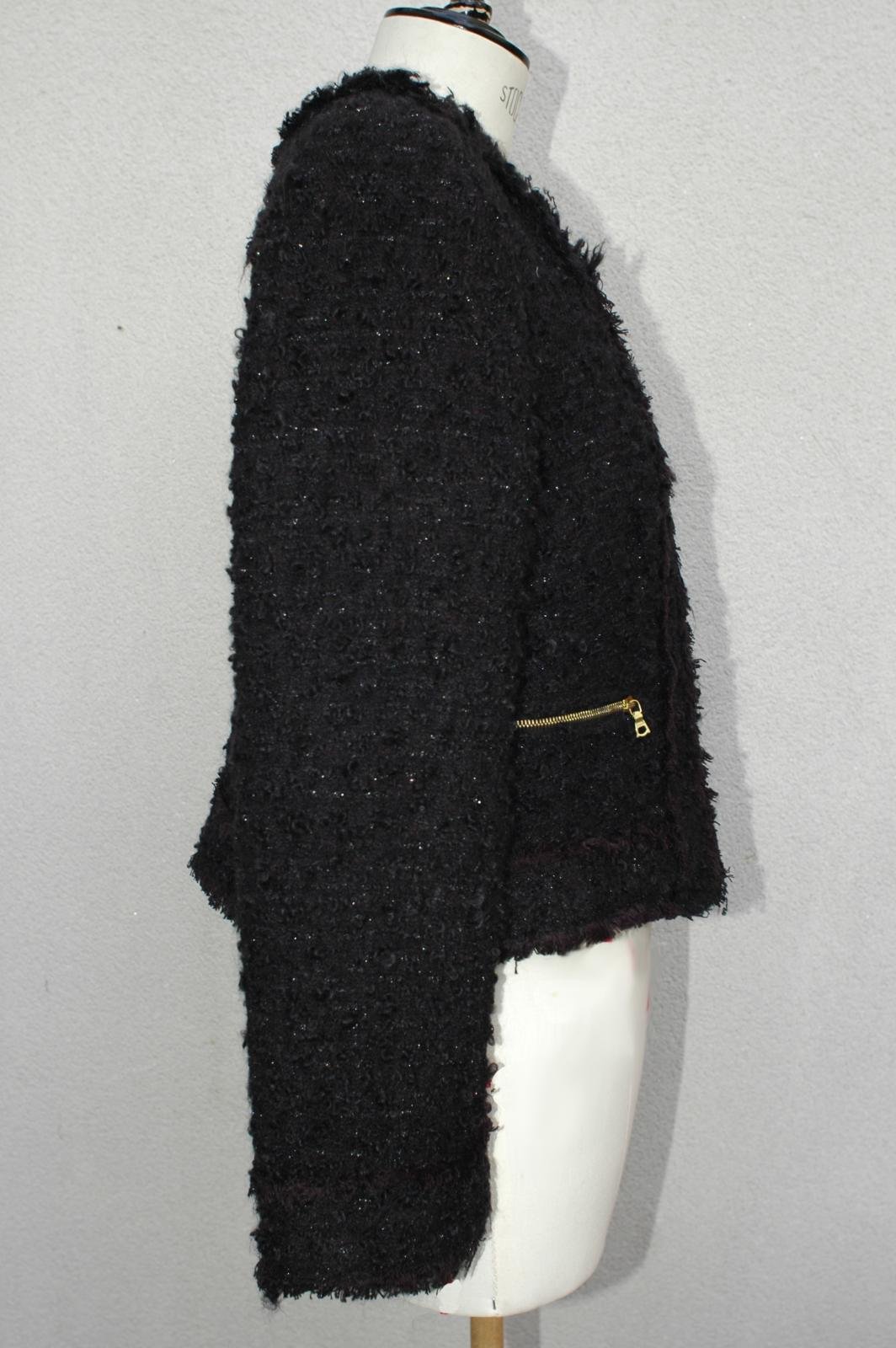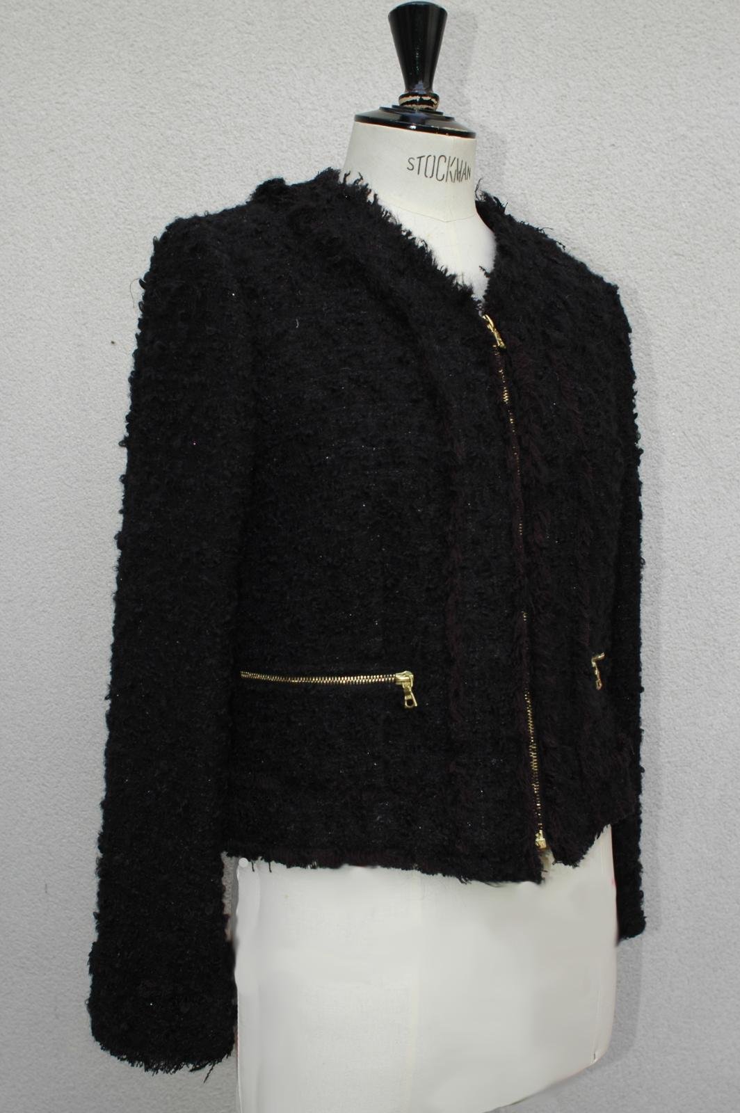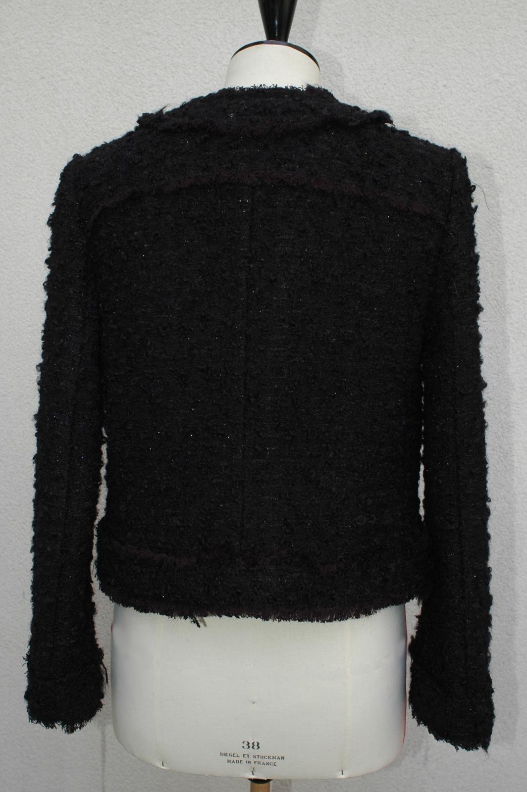 La veste est en tweed de coton et soie .Le col arrondi et couture de la veste est parfaite pour mettre en valeur votre décolleté et un collier .