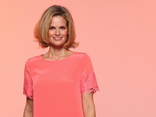 Eté 2015 – ROBE TRAPEZE HEIDI EN CREPE MAROCAIN ENVERS SATIN ET DENTELLE DE CALAIS