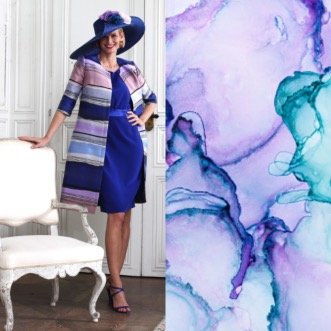 La ligne Ofelia Bleu Majorelle se décline avec un magnifique manteau à porter sur une robe unie coordonnée, en crêpe envers Satin fluide pour une silhouette sensuelle et dynamique.