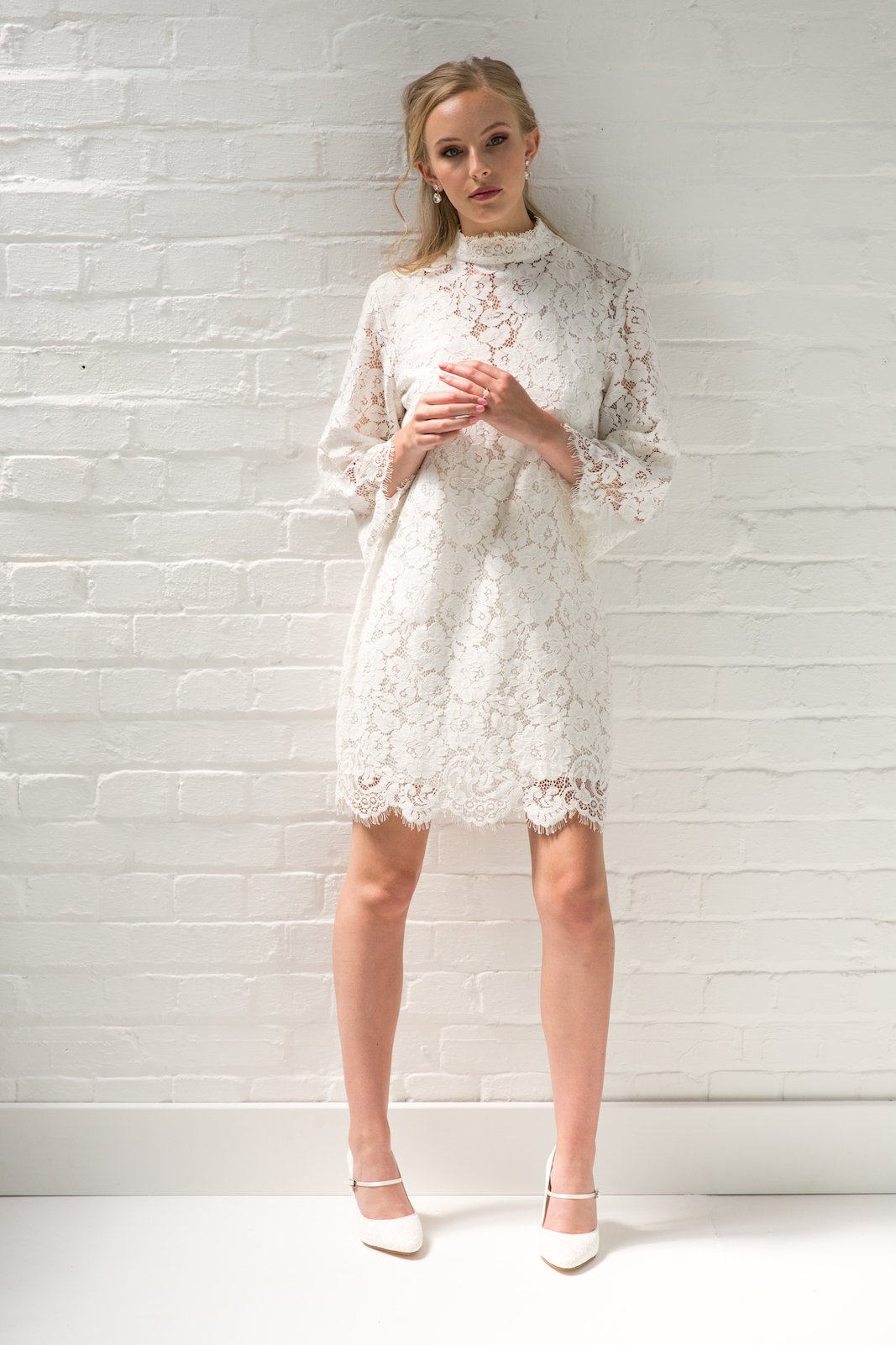 En satin ivoire recouvert de dentelle fine, ces chaussures de cérémonie seront parfaites pour se coordonner avec une robe de mariée courte.