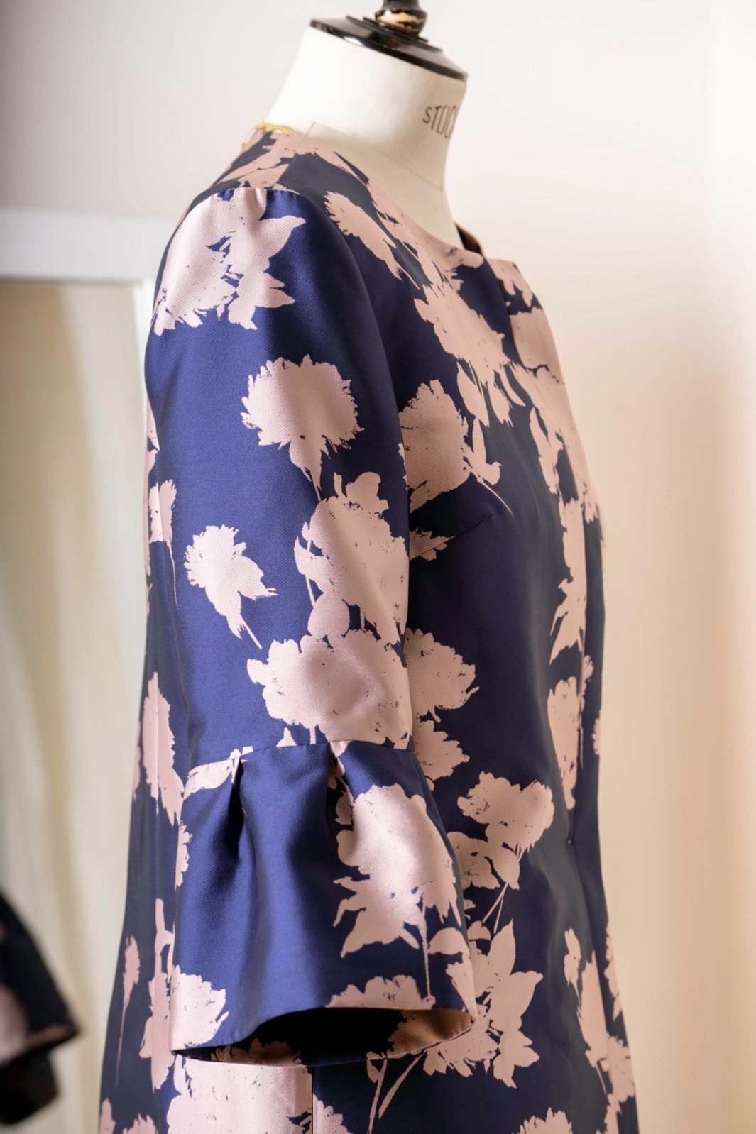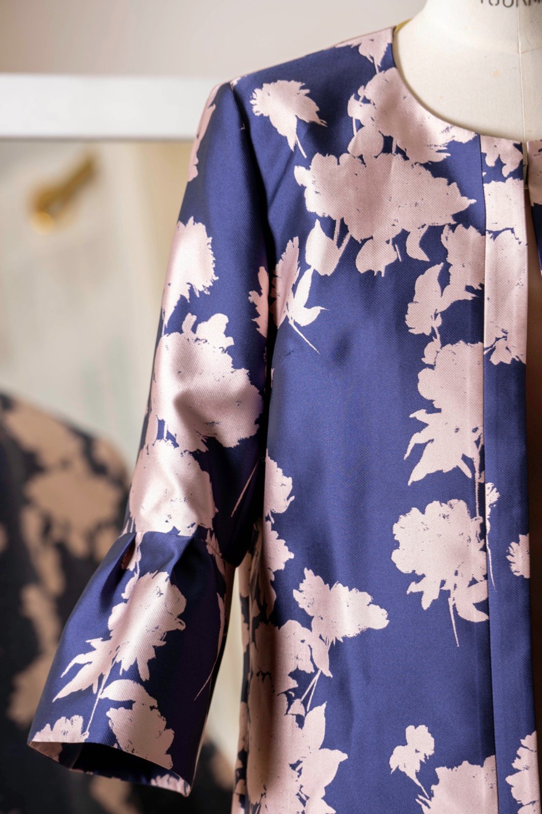 Ce vêtement est fabriqué avec du Crêpe mousse envers satin : il s’agit d’une étoffe tissée en France.