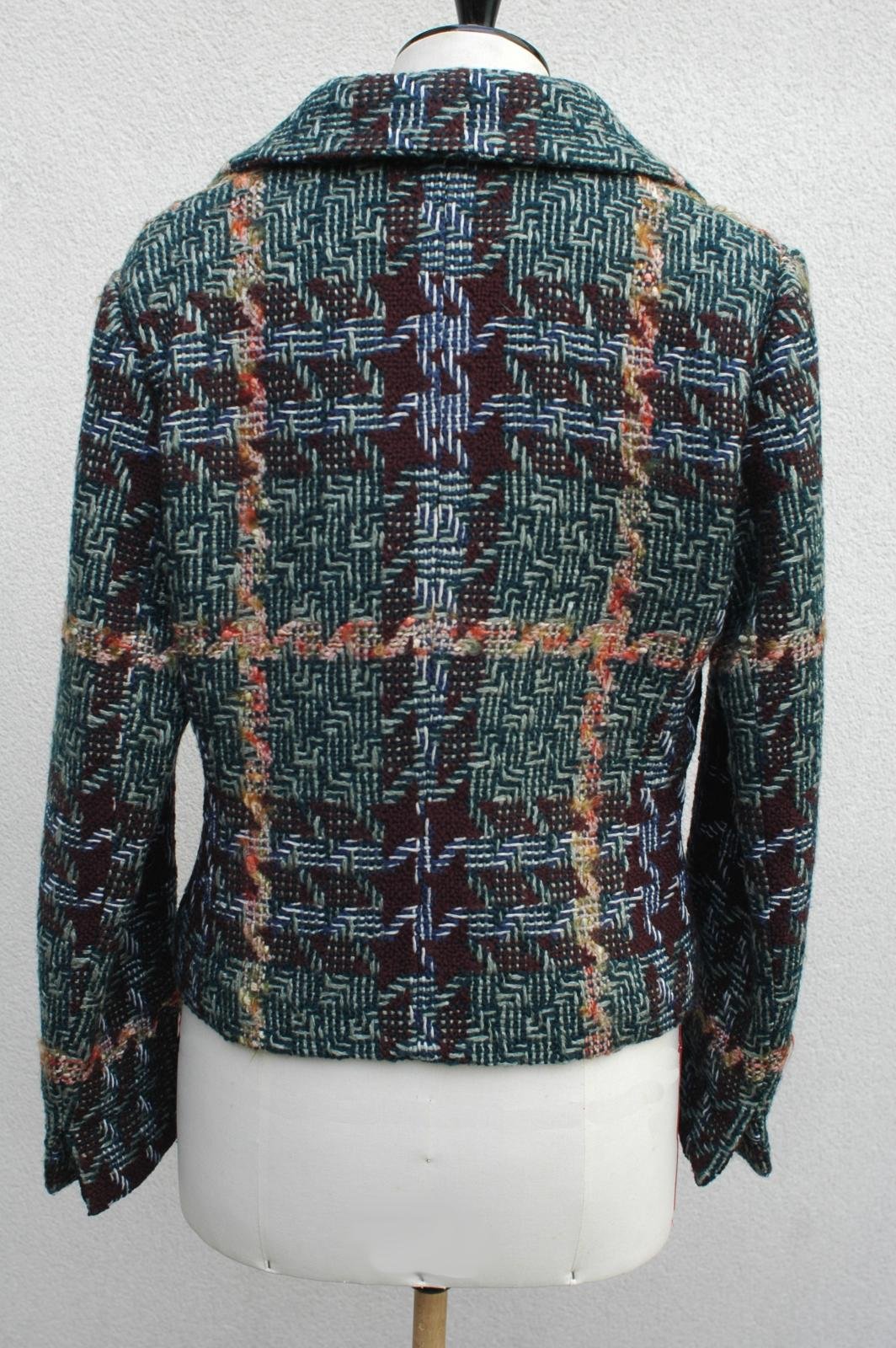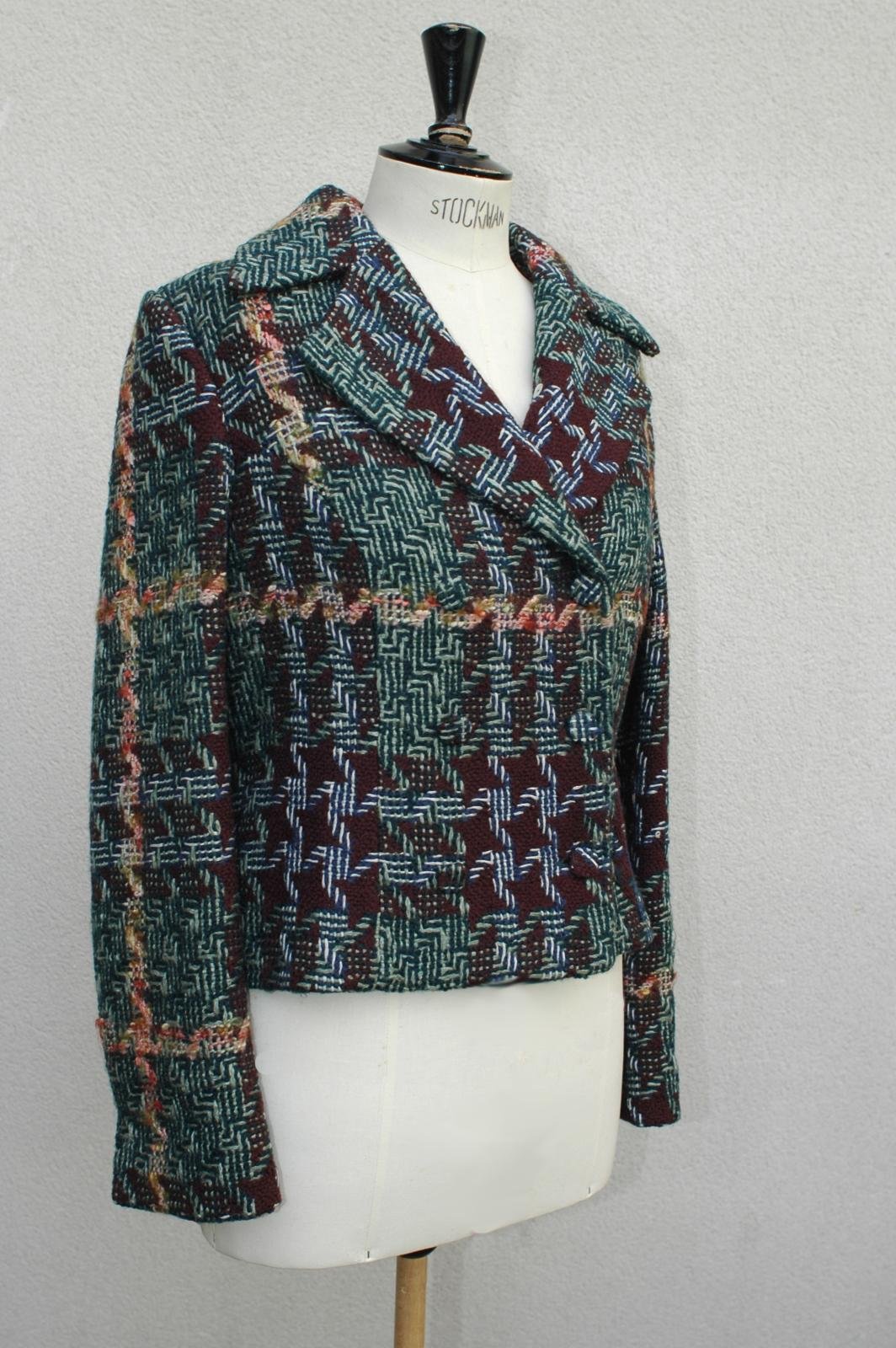La veste est en tweed de coton et soie .Le col arrondi et couture de la veste est parfaite pour mettre en valeur votre décolleté et un collier .