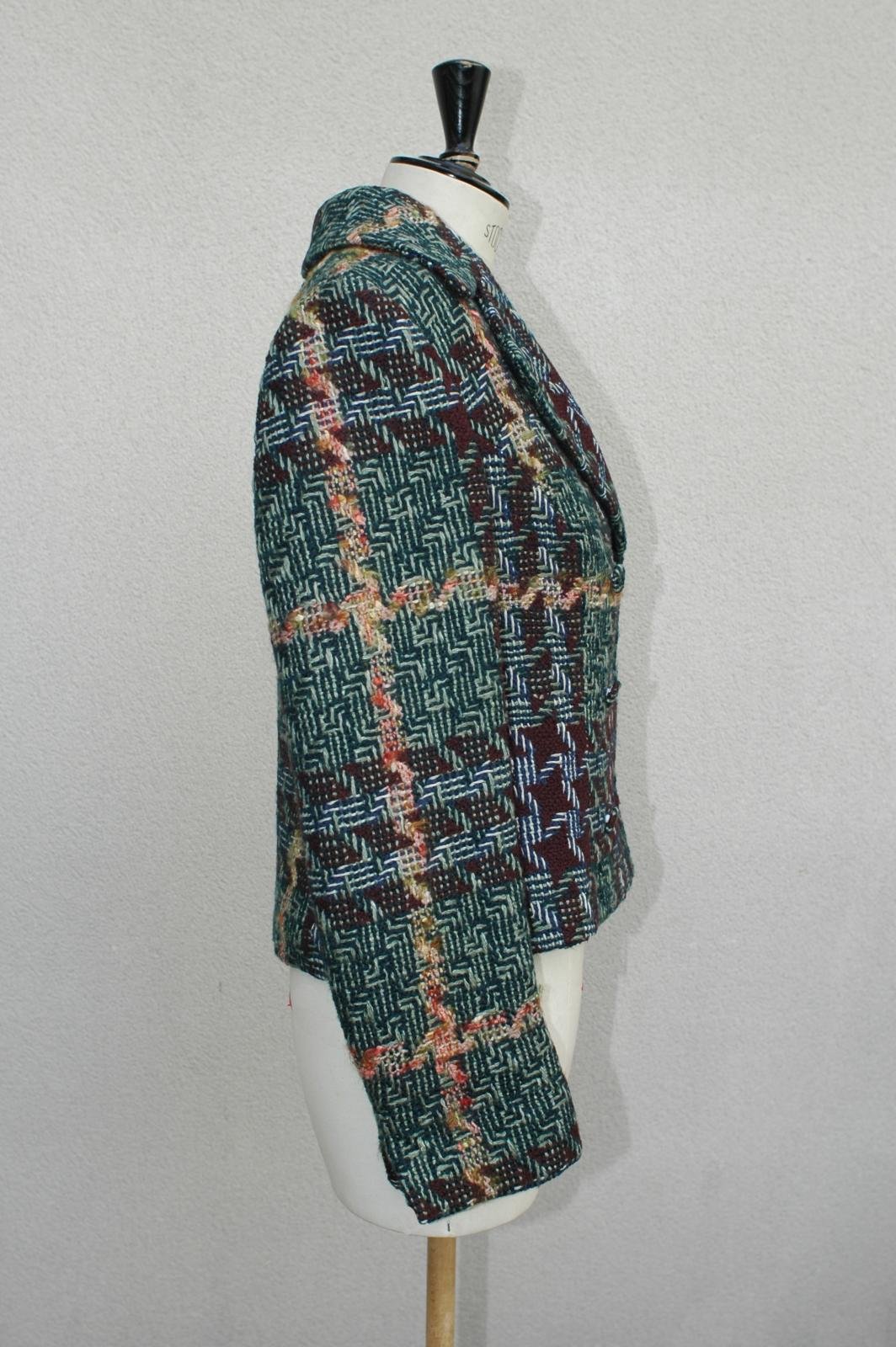 Cette veste est fabriquée en tweed haute couture : il s’agit d’une étoffe tissée en Ecosse. .
