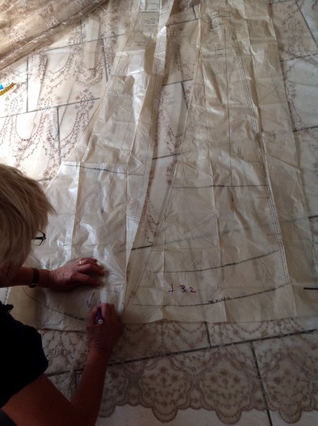 Après avoir donc lu pendant un mois la vie de Joséphine, un beau matin, il a fallu se jeter à l’eau et commencer à rêver avec un joli tissu brodé choisi pour sa finesse et son dessin délicat rappelant la géométrie très particulière du style empire. Ce tulle a été brodé pour l’occasion par une manufacture de broderie du nord de la France existant depuis 1920.