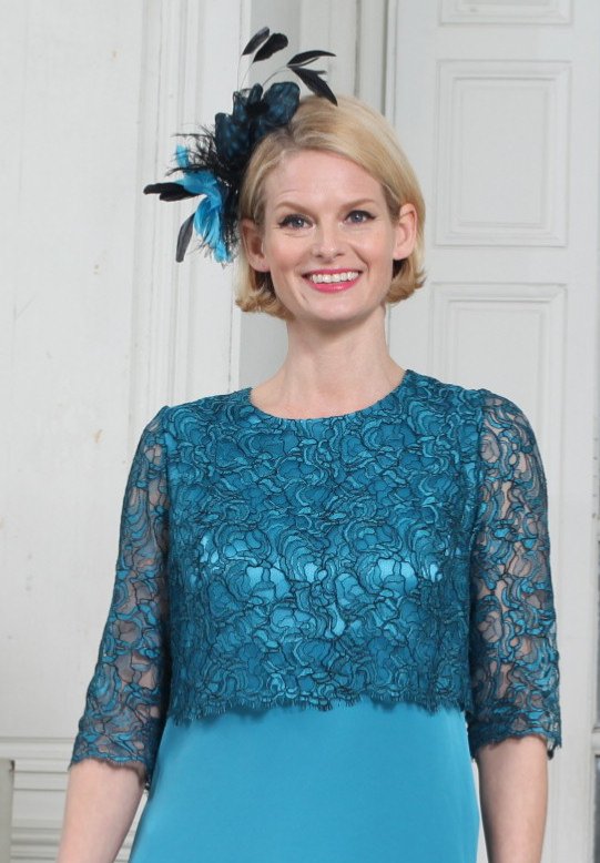 Belle robe en crêpe lourd envers satin idéale pour une cérémonie de mariage habillée ou une cérémonie civile. Sa coupe ultra confortable vous assure une silhouette élégante et le tissu frais et soyeux est très agréable à porter. Taille légèrement marquée soulignée par un haut entièrement en dentelle de Calais qui donne beaucoup de style à cette robe de cocktail 3 trous revisitée. Zip invisible dos et manches 3/4 en dentelle française de Calais Caudry.