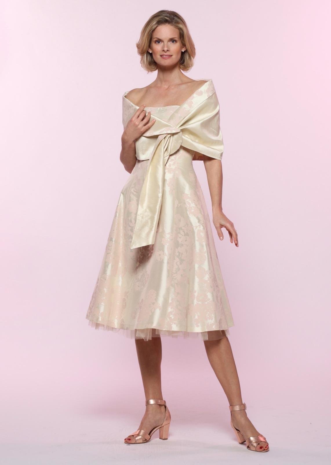 Le volume de la jupe reste cependant maîtrisé et dévoile une silhouette affinée et un décolleté sexy.
