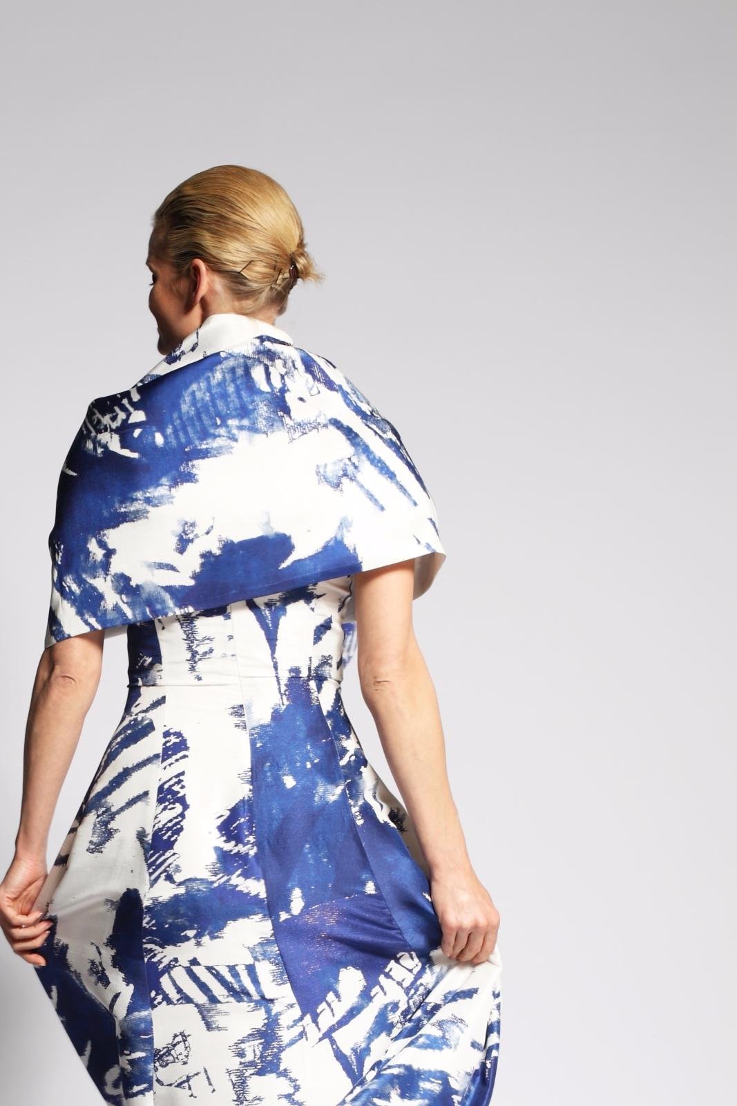 Robe Kyra : Soie fine imprimée bleu de chine imprimé haute couture exclusif
