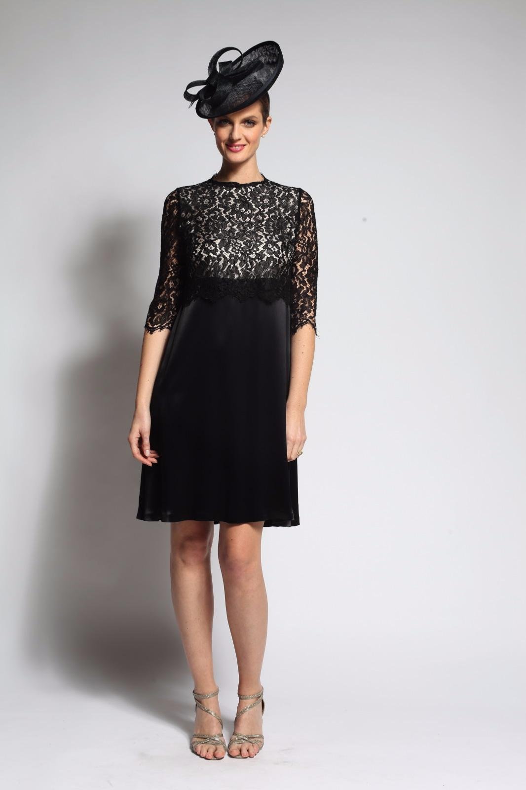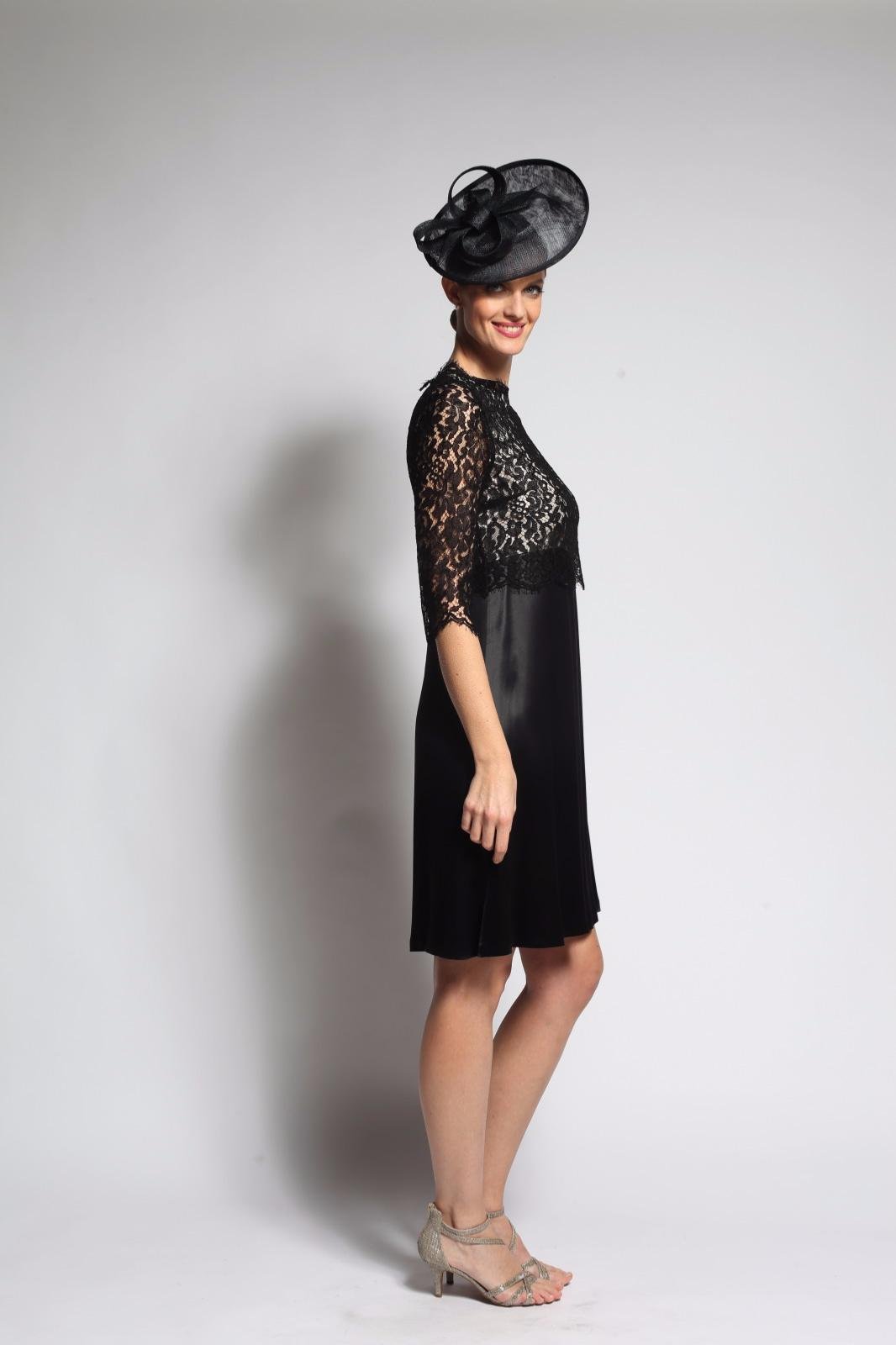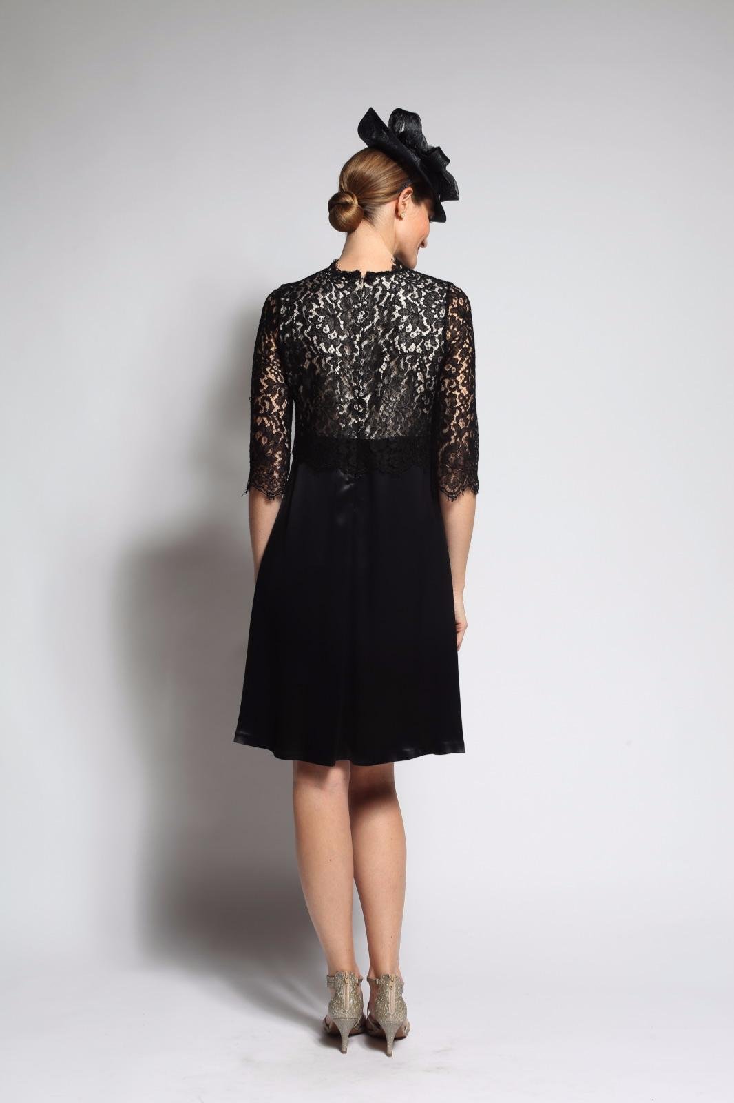 Magnifique robe fluide avec haut et manches 3/4 en dentelle de Calais. Cette robe de cocktail en crêpe lourd est parfaite pour un cocktail mondain ou une cérémonie. C’est la tenue idéale et indémodable, facile à reporter.