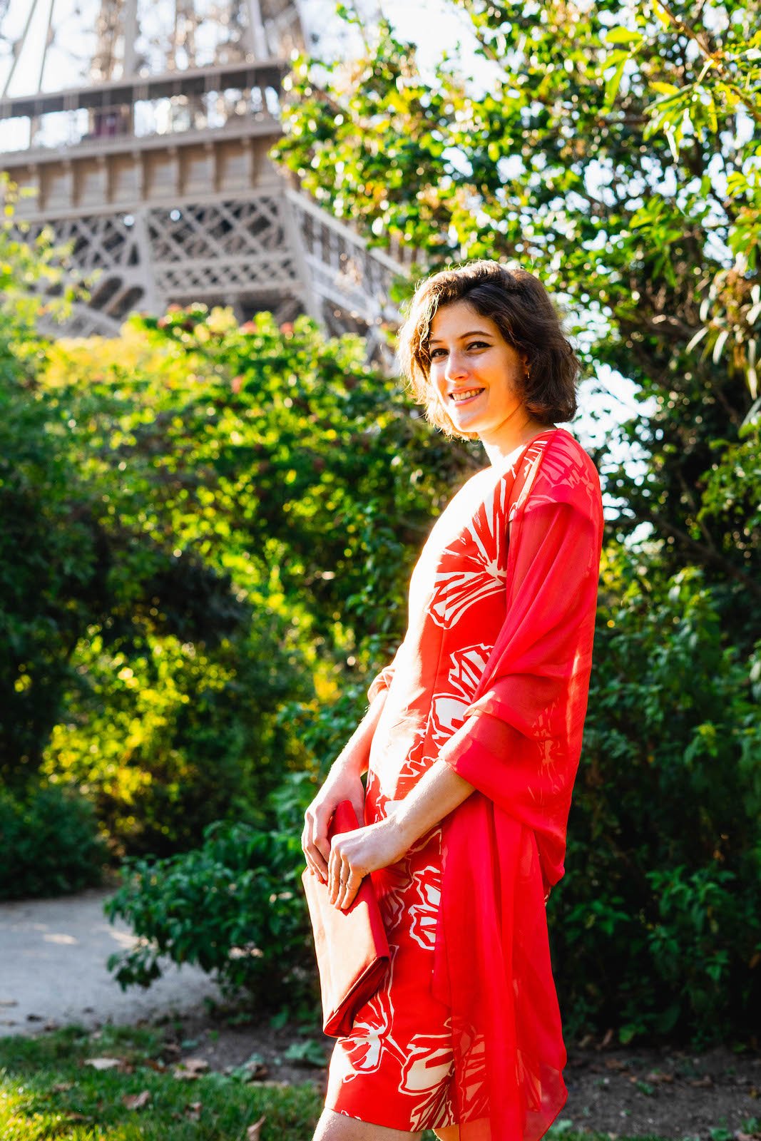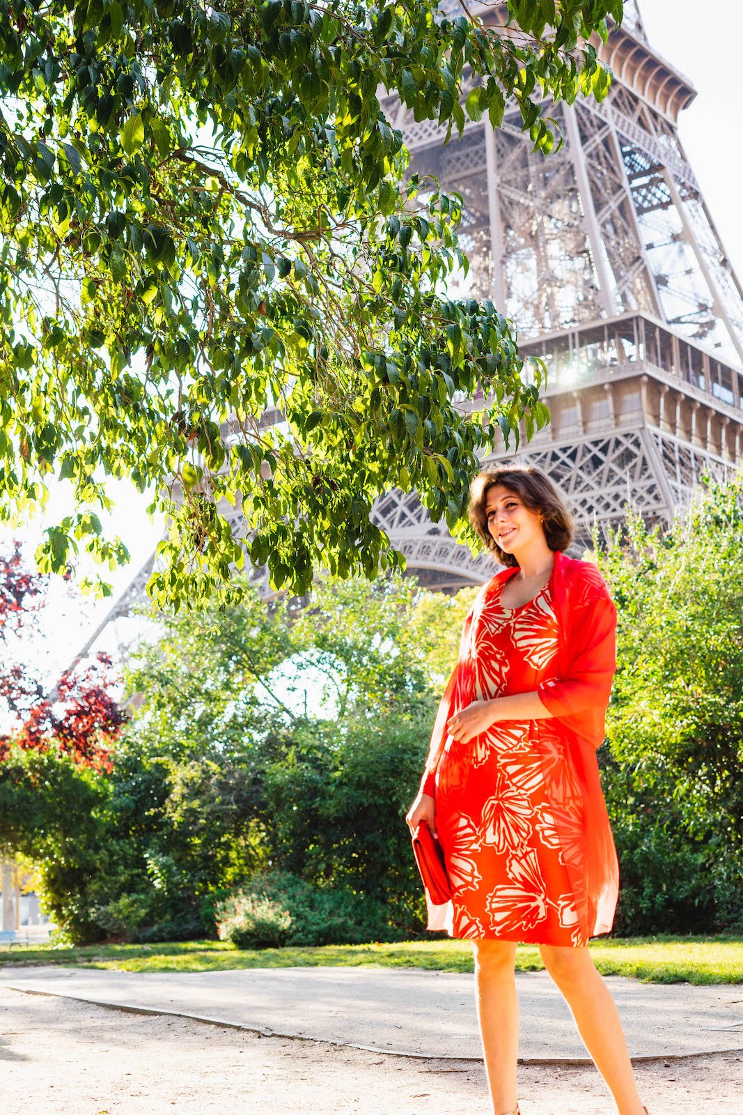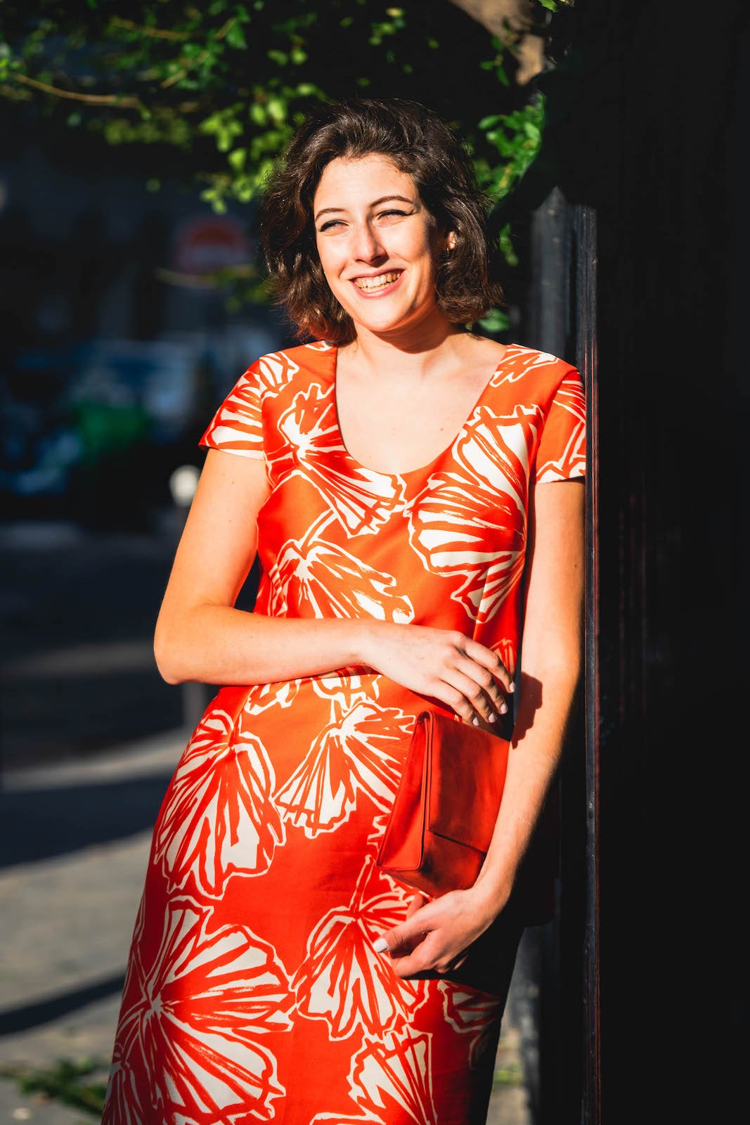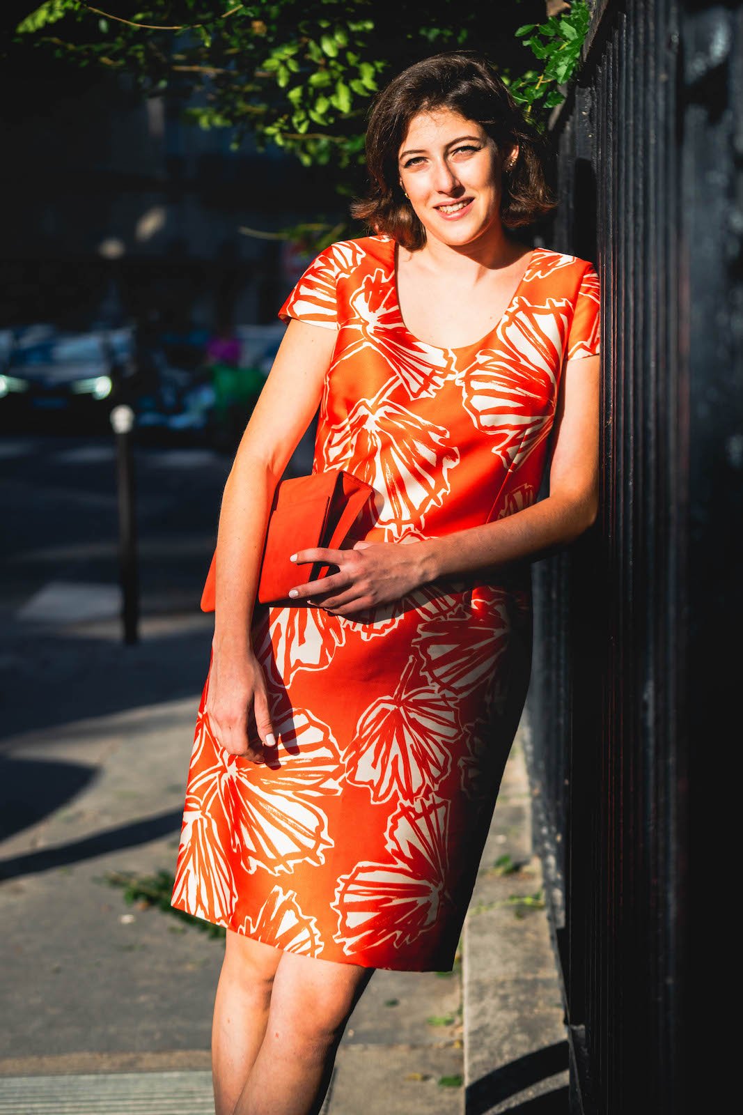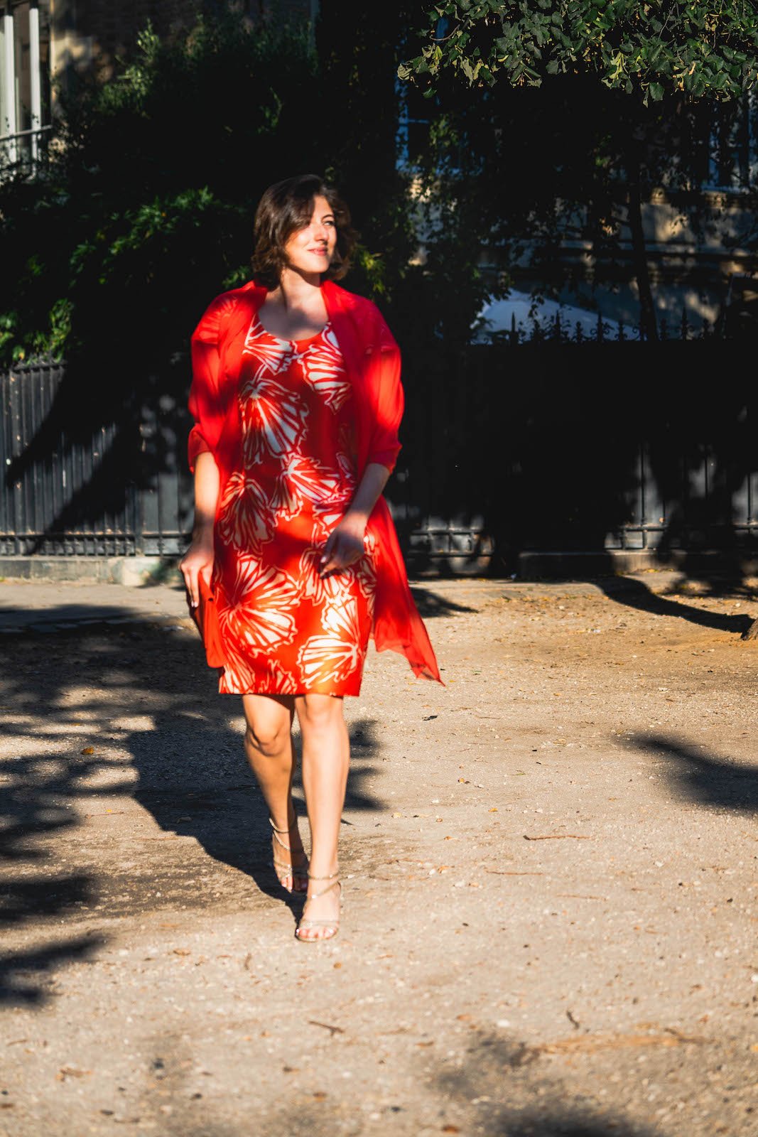 Cette élégante robe trois trous à petites manches et encolure dégagée renouvelle lesprit du chic à la française. Le superbe imprimé soyeux aux coloris toniques et seyants lui assure une élégance intemporelle et moderne. Cette tenue chic sera facile à porter lors dun mariage estival ou pour une réception plus décontractée. Coupe princesse légèrement entravée, fente au dos et zip invisible.