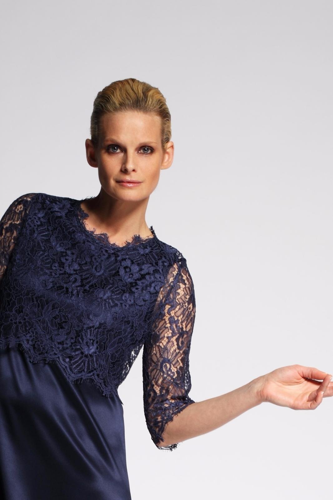 En crèpe et dentelle de Calais-Caudry, la coupe sobre et moderne de cette robe vous rendra très élégante pour le mariage de votre enfant.
