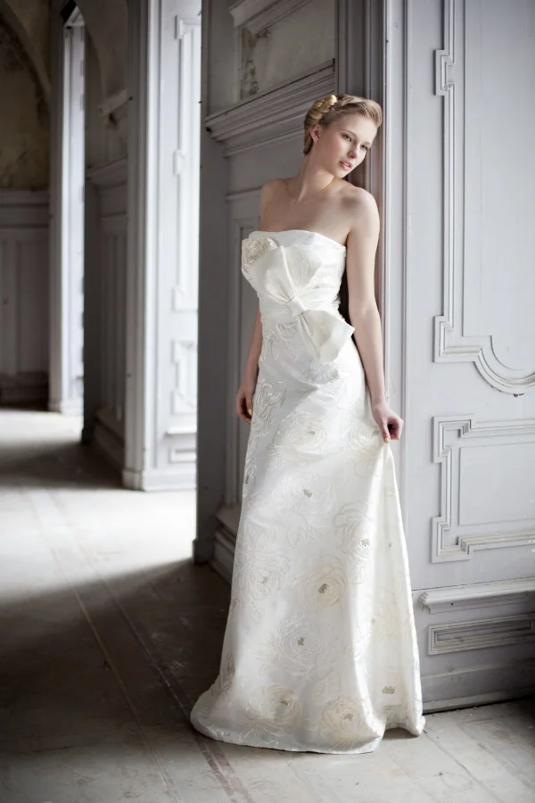 Il n’est pas rare que la traditionnelle robe droite ivoire se change en modèle plus fantaisie. Vous oserez peut-être un décolleté audacieux souligné par une jolie dentelle de Calais ou un ensemble superbement brodé ?