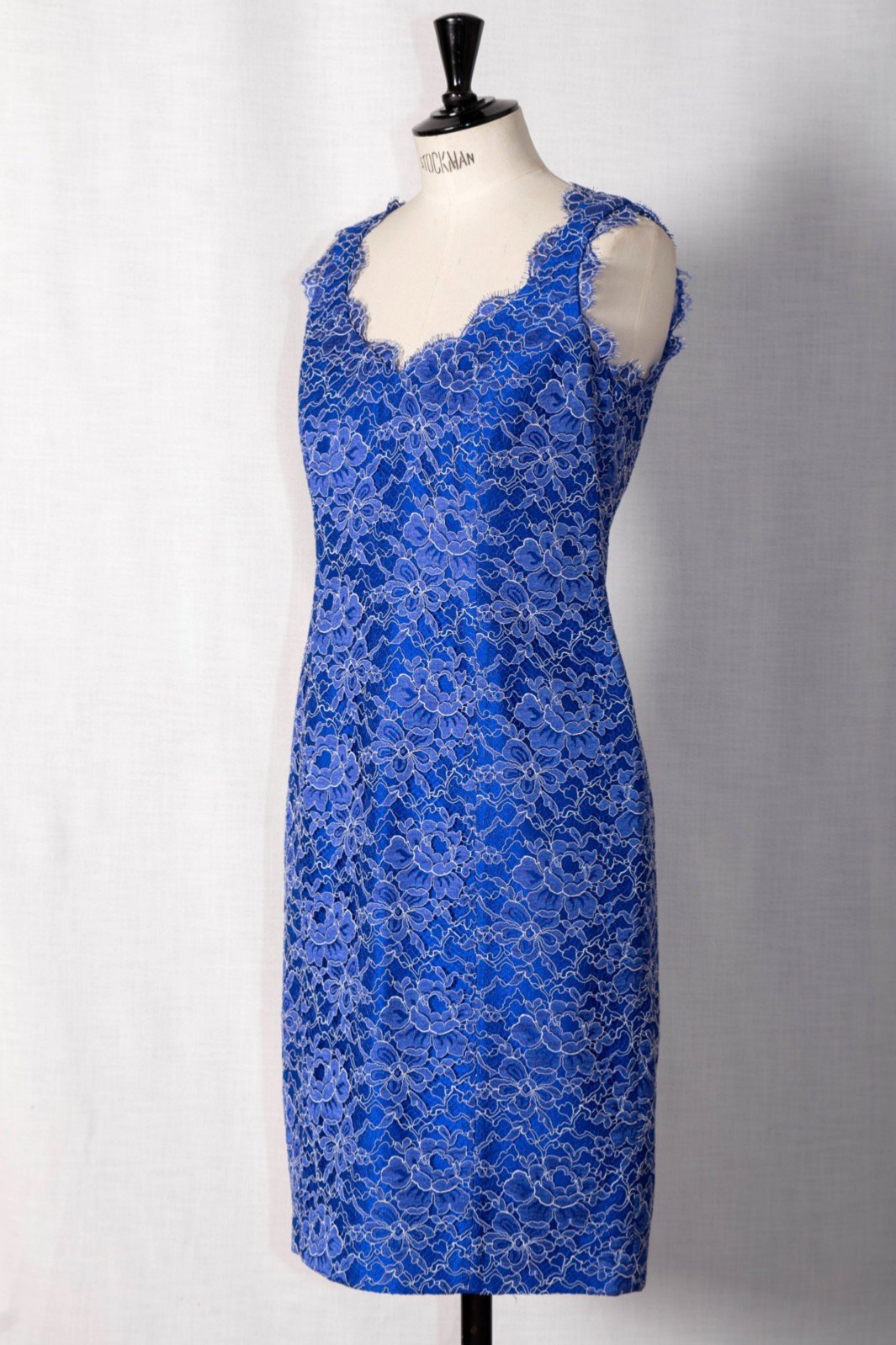 Elégante robe fourreau en dentelle de calais stretch BLEU MAJORELLE T40