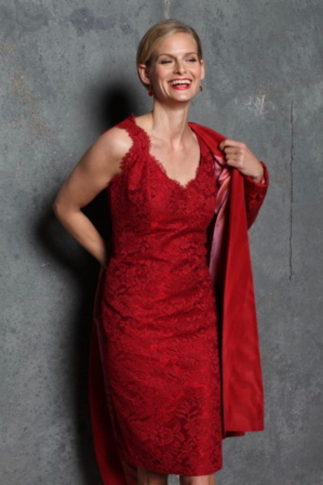 TAILLEUR MANTEAU IDYLLE EN MOIRE ET ROBE NORA CAFTAN RUBIS T40