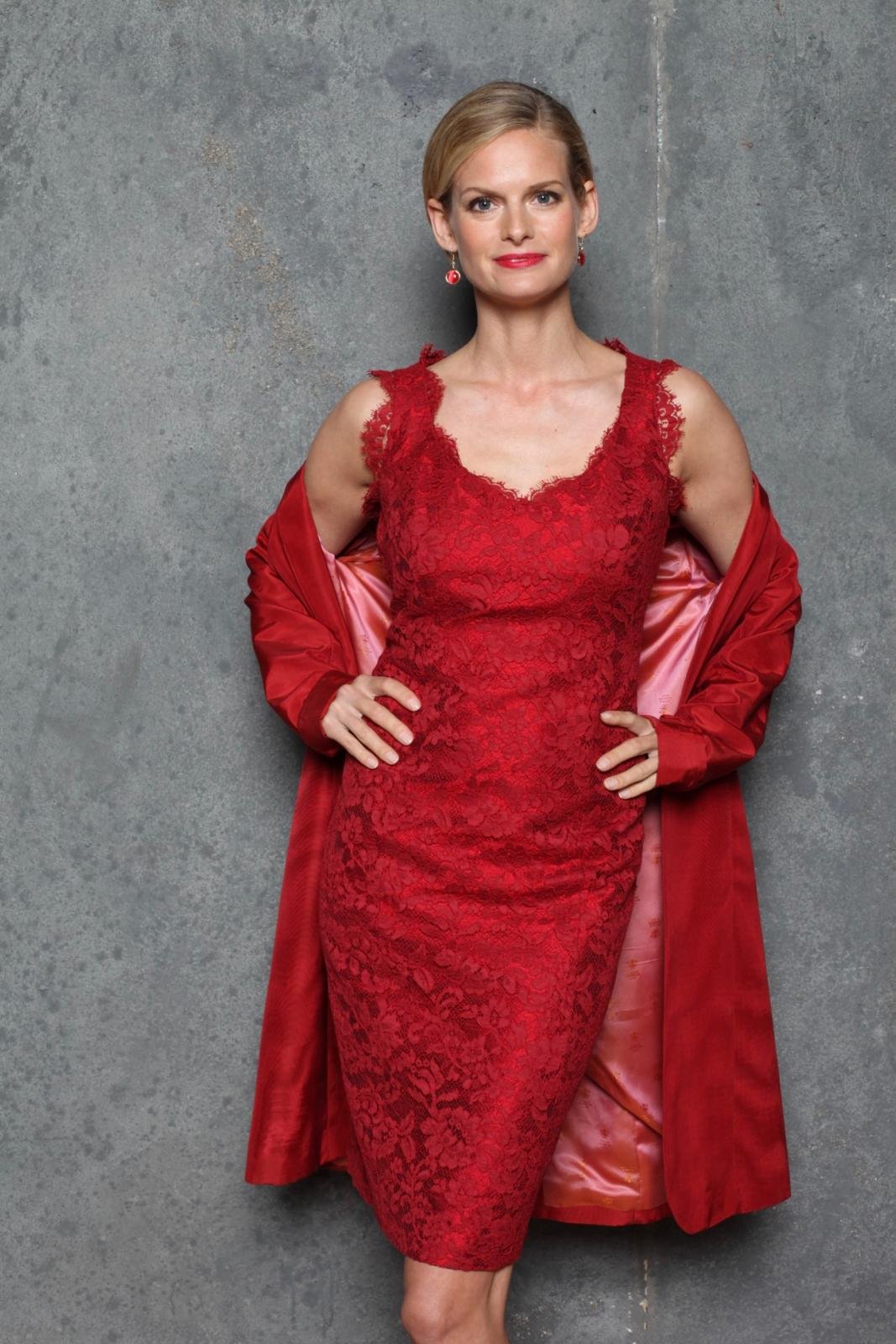 La robe est en dentelle de calais rebrodée et est confortable pour pouvoir danser.