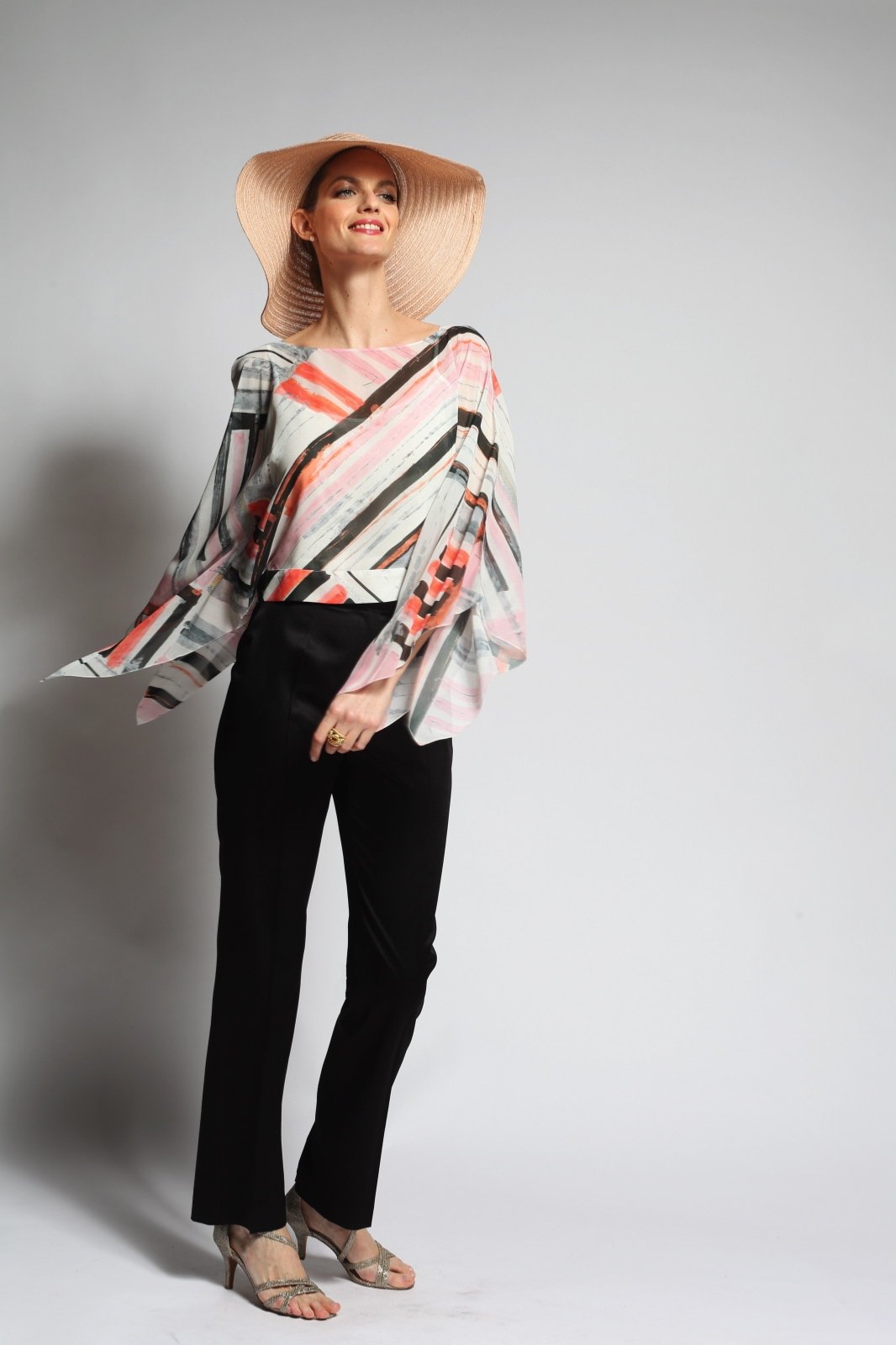 Tailleur pantalon YOKOHAMA top manches kimono en crêpe de Chine