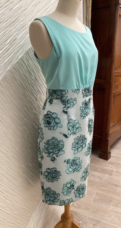 En magnifique tissu brocard tissé en Italie, ce beau manteau manches 3/4 est idéal pour un mariage ou un cocktail estival… Porté avec une belle robe de cocktail avec empiècement haut en crêpe froncé, taille marquée et jupe en brocard assorti au manteau.