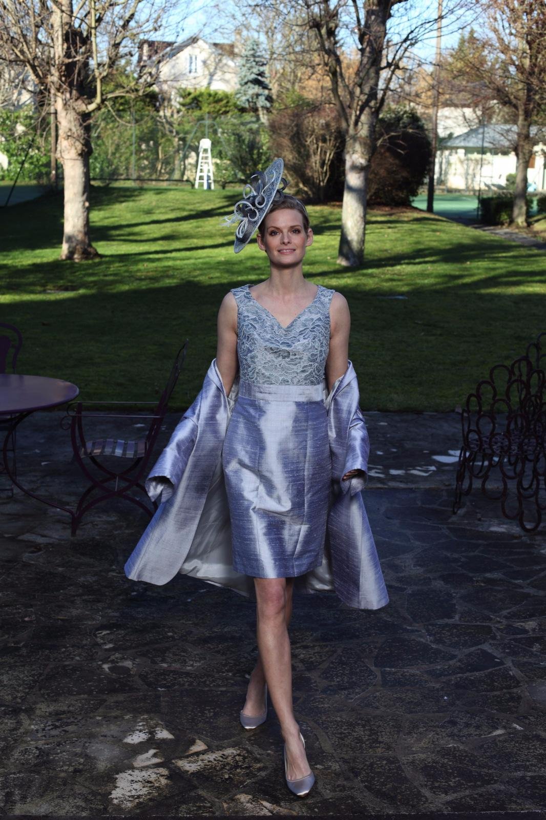 Tailleur robe manteau KANPUR en soie et dentelle de Calais