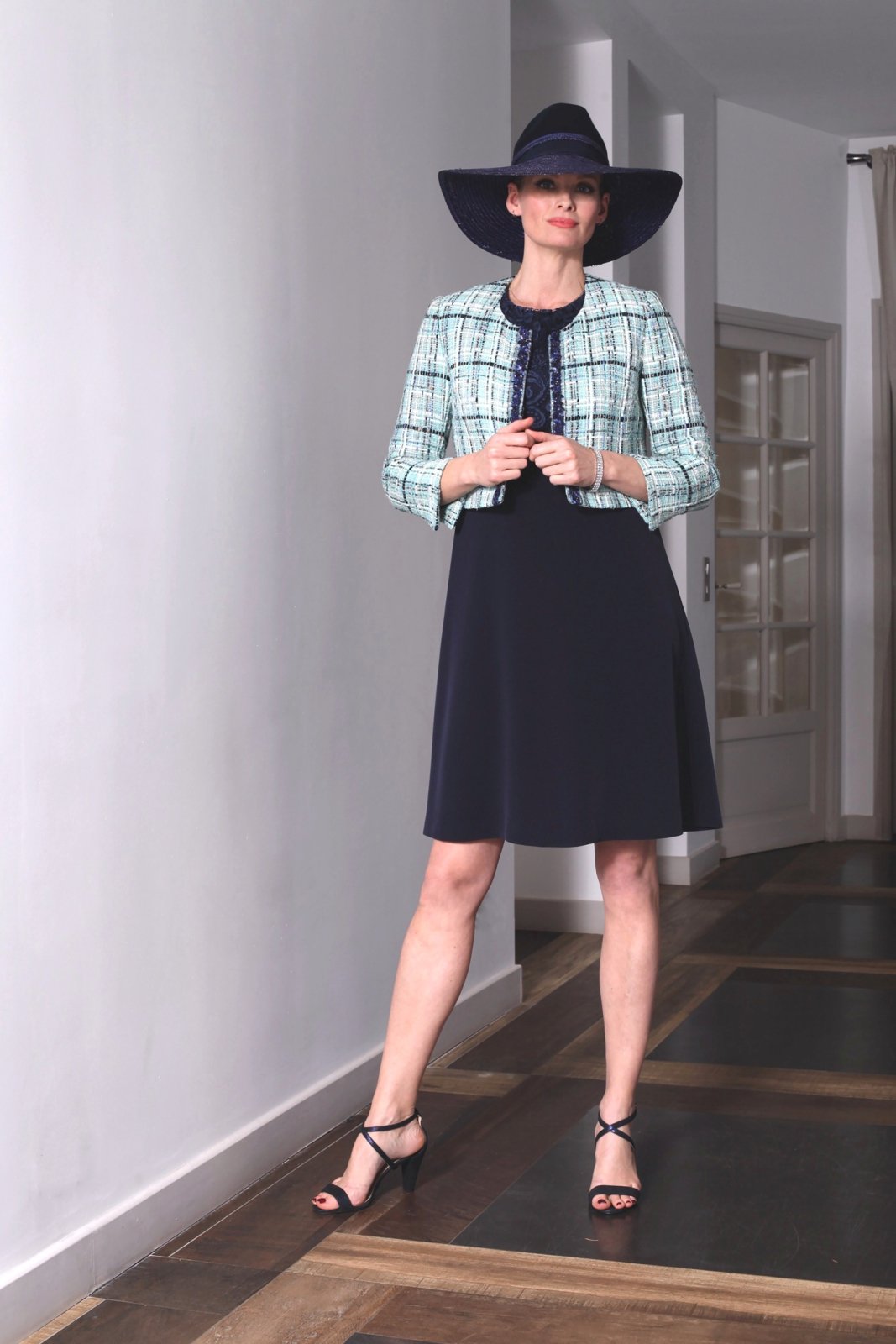 Les coloris de cette veste ultra chic sont très faciles à assortir avec de nombreux bleus doux et verts d’eau ou verts amande.