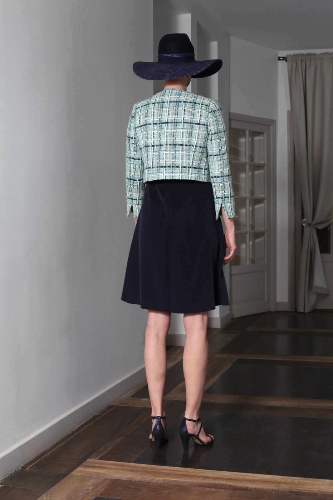 – La veste Therese en tweed aqua reperlée main