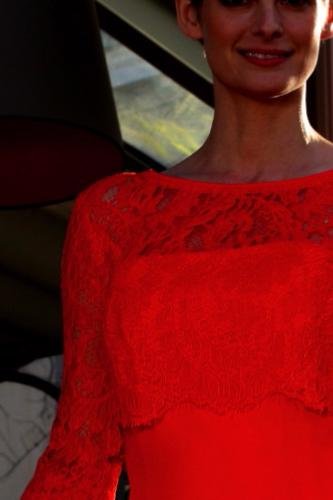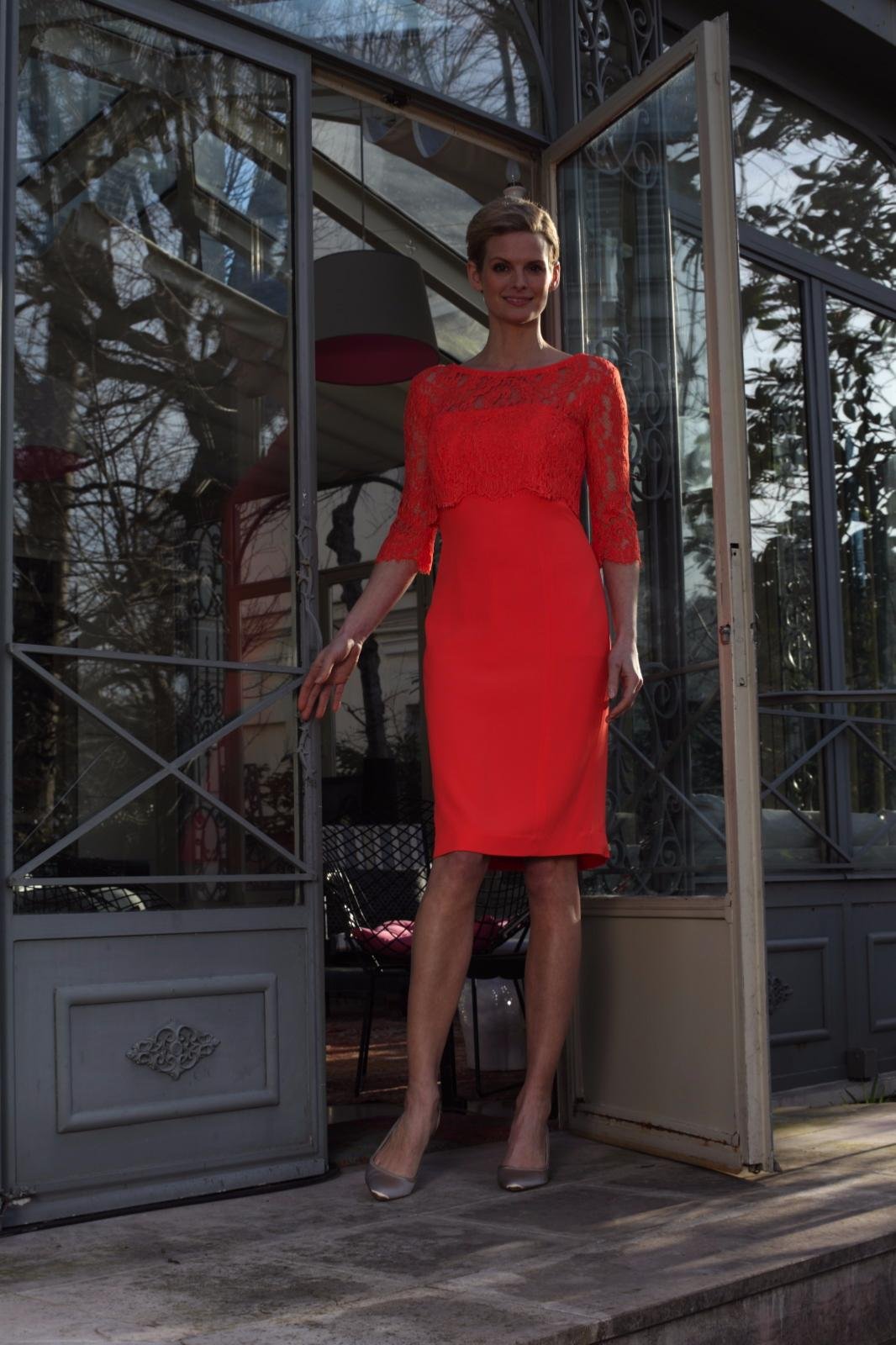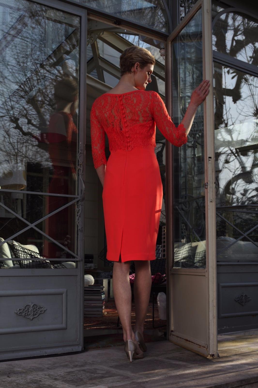 Très belle robe fourreau en crêpe AURORE et top en dentelle de Calais