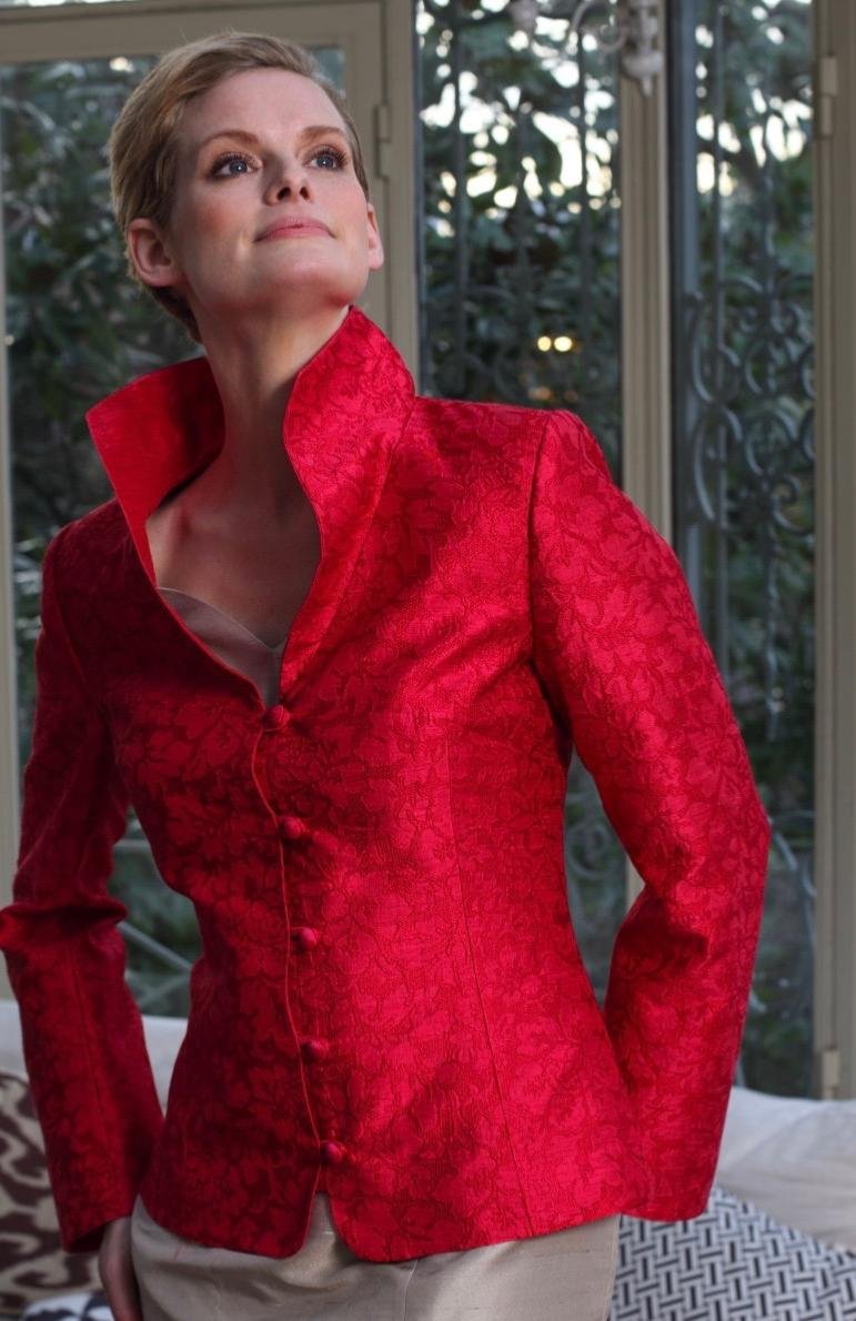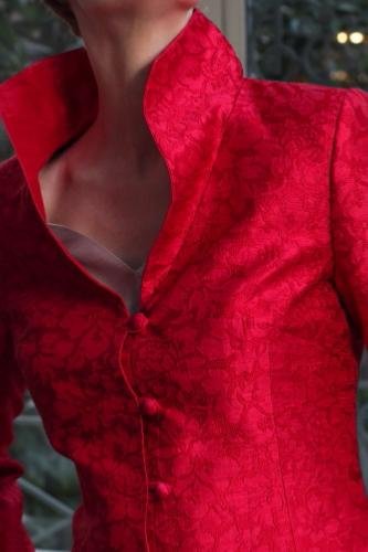 Cette veste très habillée est une de nos best seller. Avec son sa couleur flamboyante, son style sera remarqué lors d’un mariage ou d’une cérémonie familiale. Cintrée et ajusté, cette veste tailleur est entièrement brodée ton sur ton, ce qui lui donne encore plus d’élégance. Elle se portera facilement avec une robe 3 trous Paule Vasseur en soie assortie ou une robe unie.