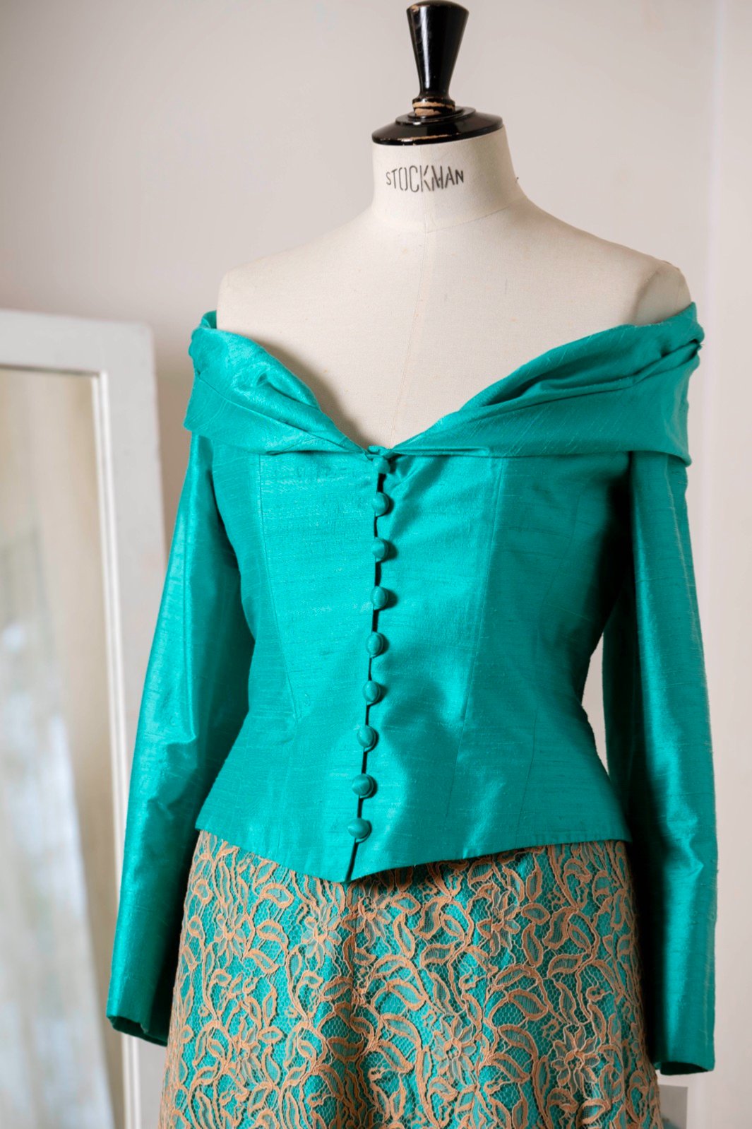 Ce vêtement est fabriqué avec du Crêpe mousse envers satin : il s’agit d’une étoffe tissée en France.